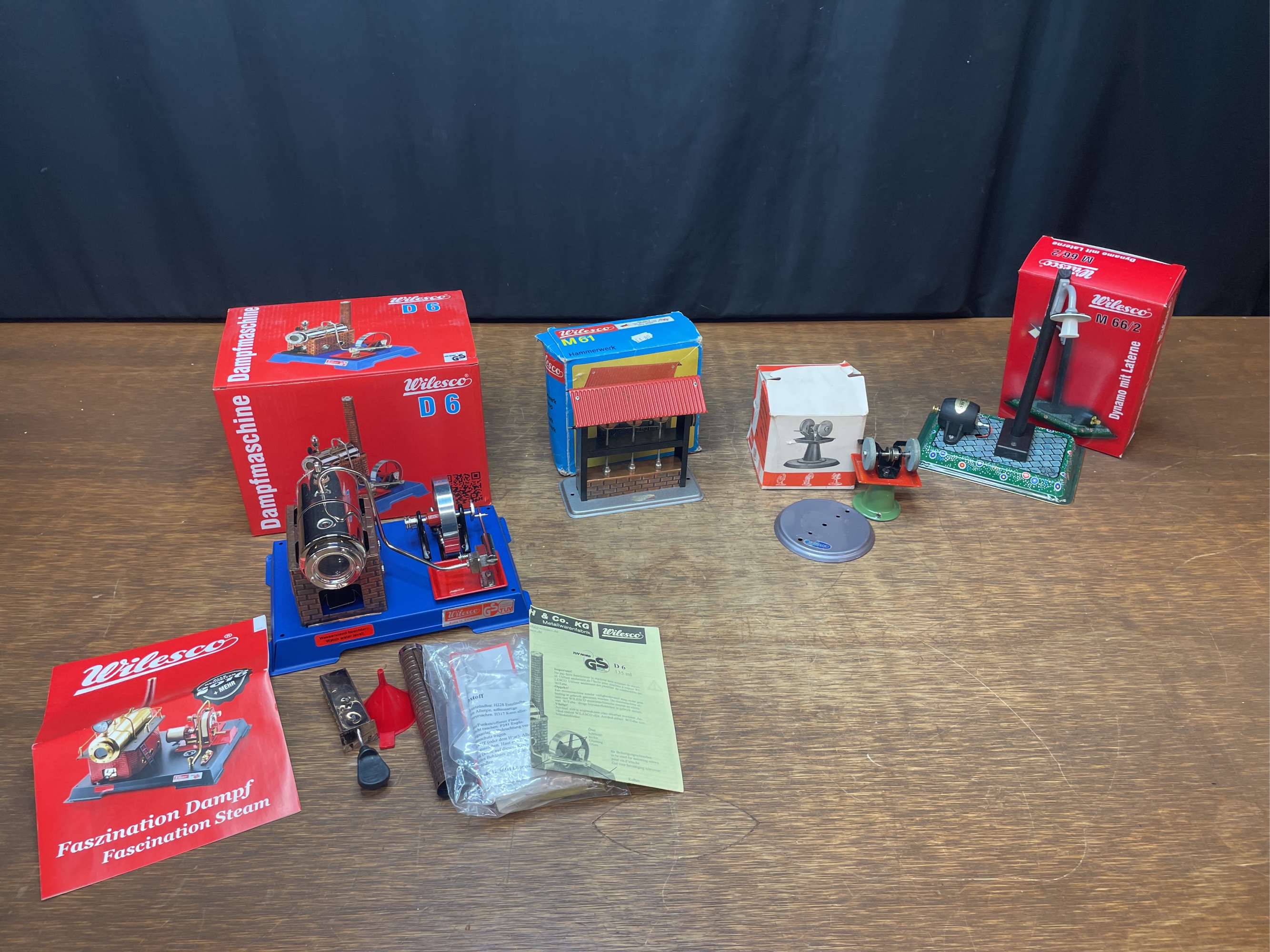 Wilesco stationary steam engine and accessories NIB. Varying condition.