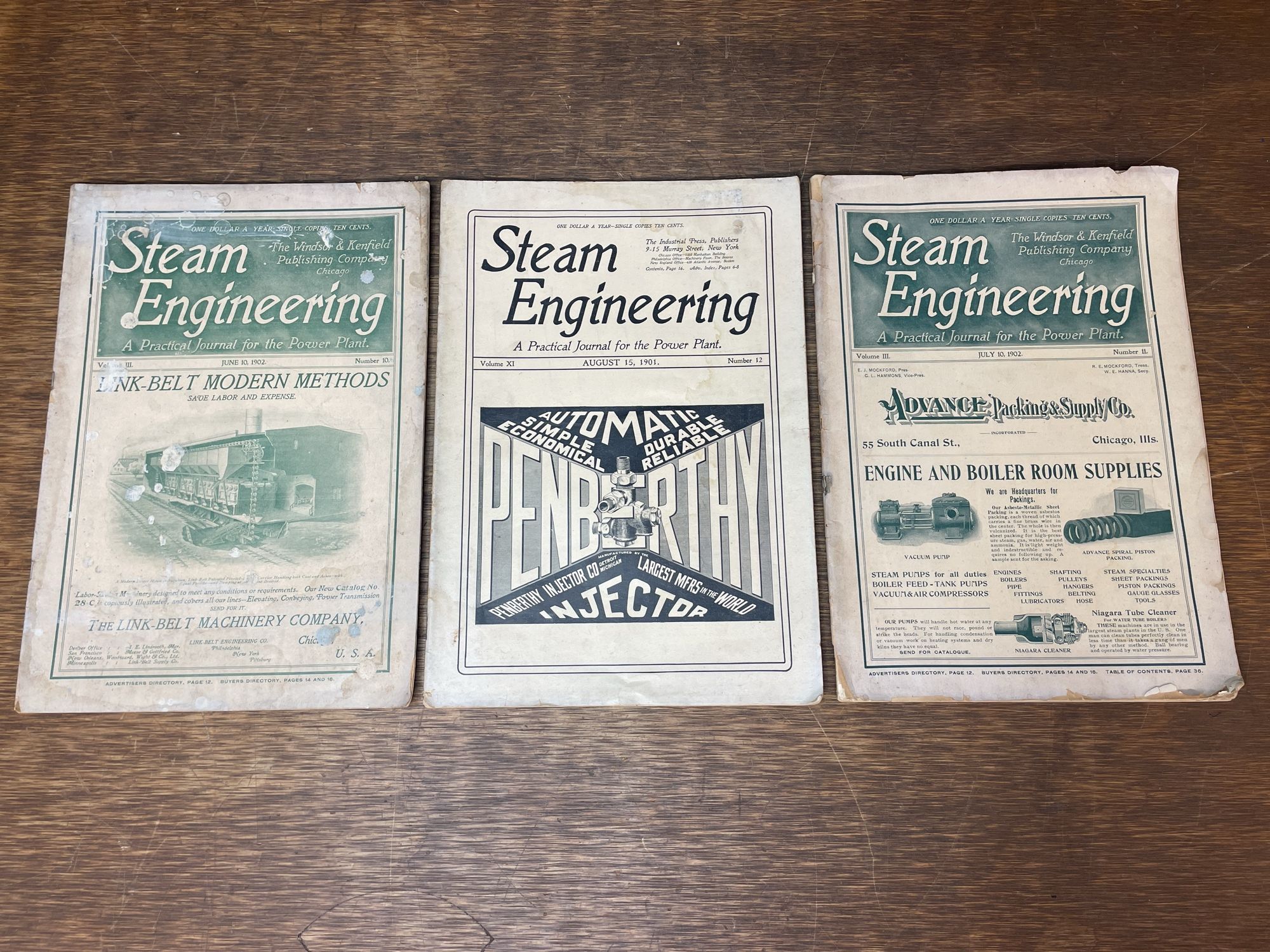 August 1901, June 1902, July 1902 Steam Engineering magazines. Varying condition.