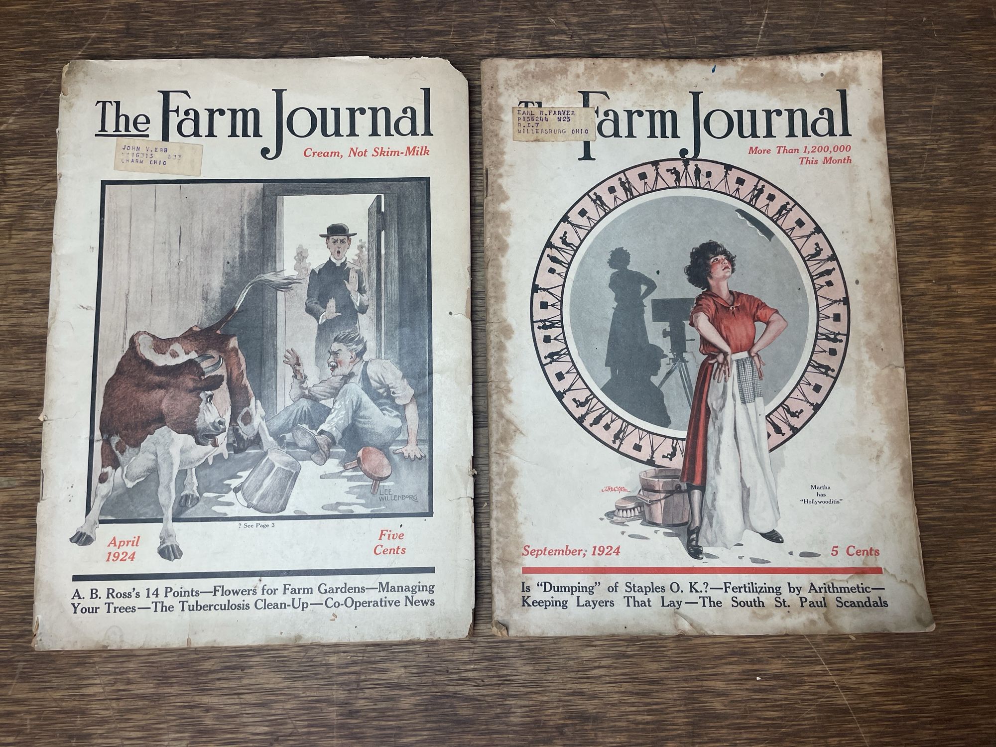 1924 April + September The Farm Journal magazines. Both shows wear, staining, discoloration, and damage.