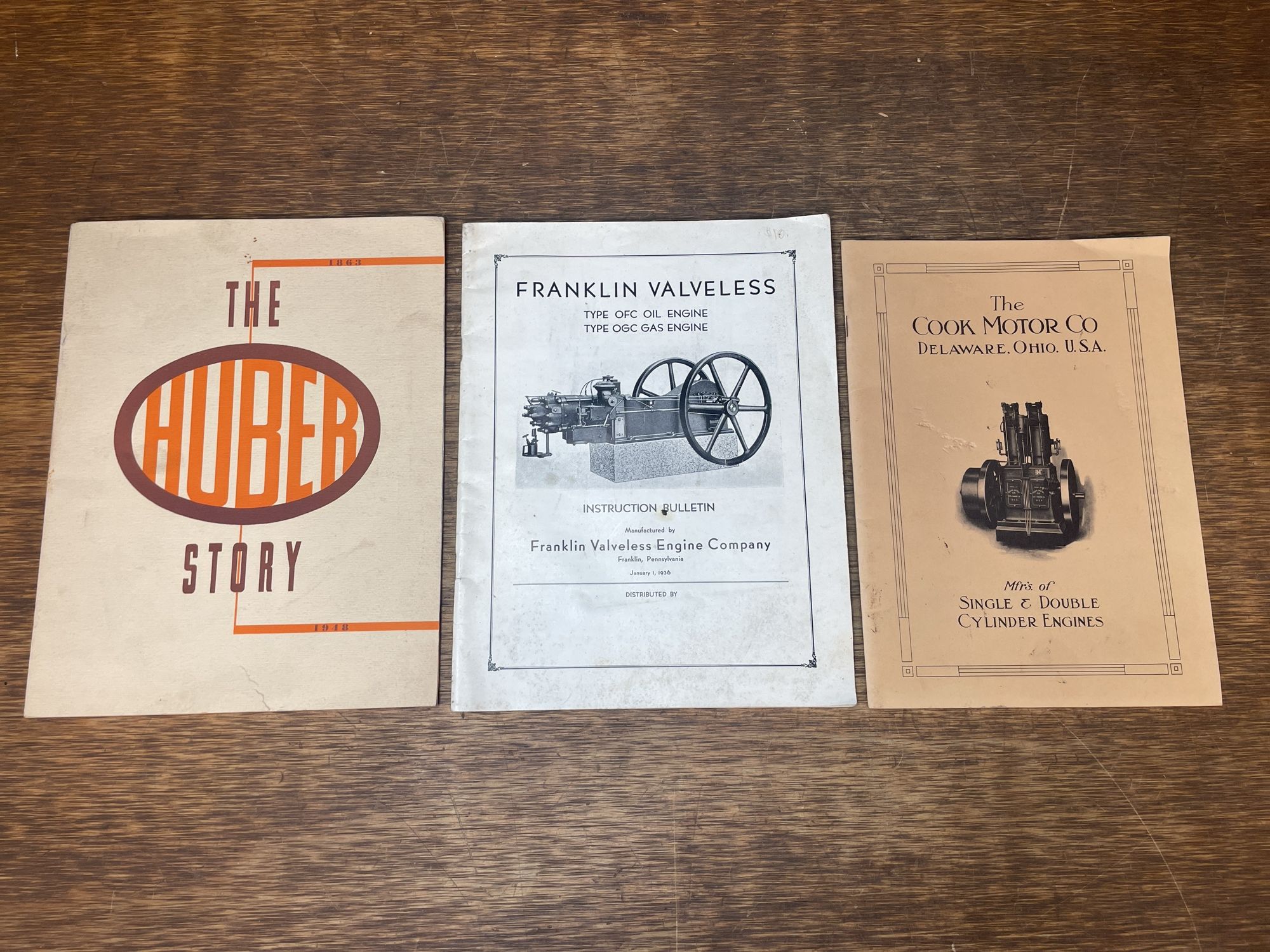 The Huber Story sales literature. Franklin Valveless Engine Company instruction bulletin. Cook Motor Co. sales literature. Varying condition.