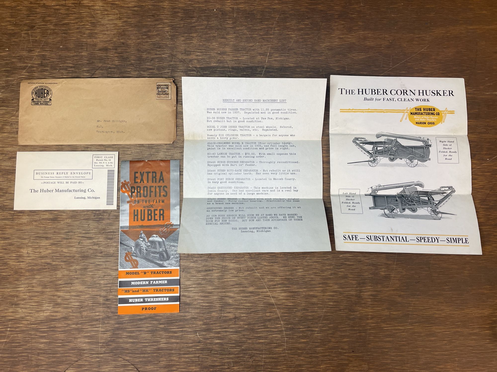 Huber sales literature lot in original envelope. All show light wear and staining.