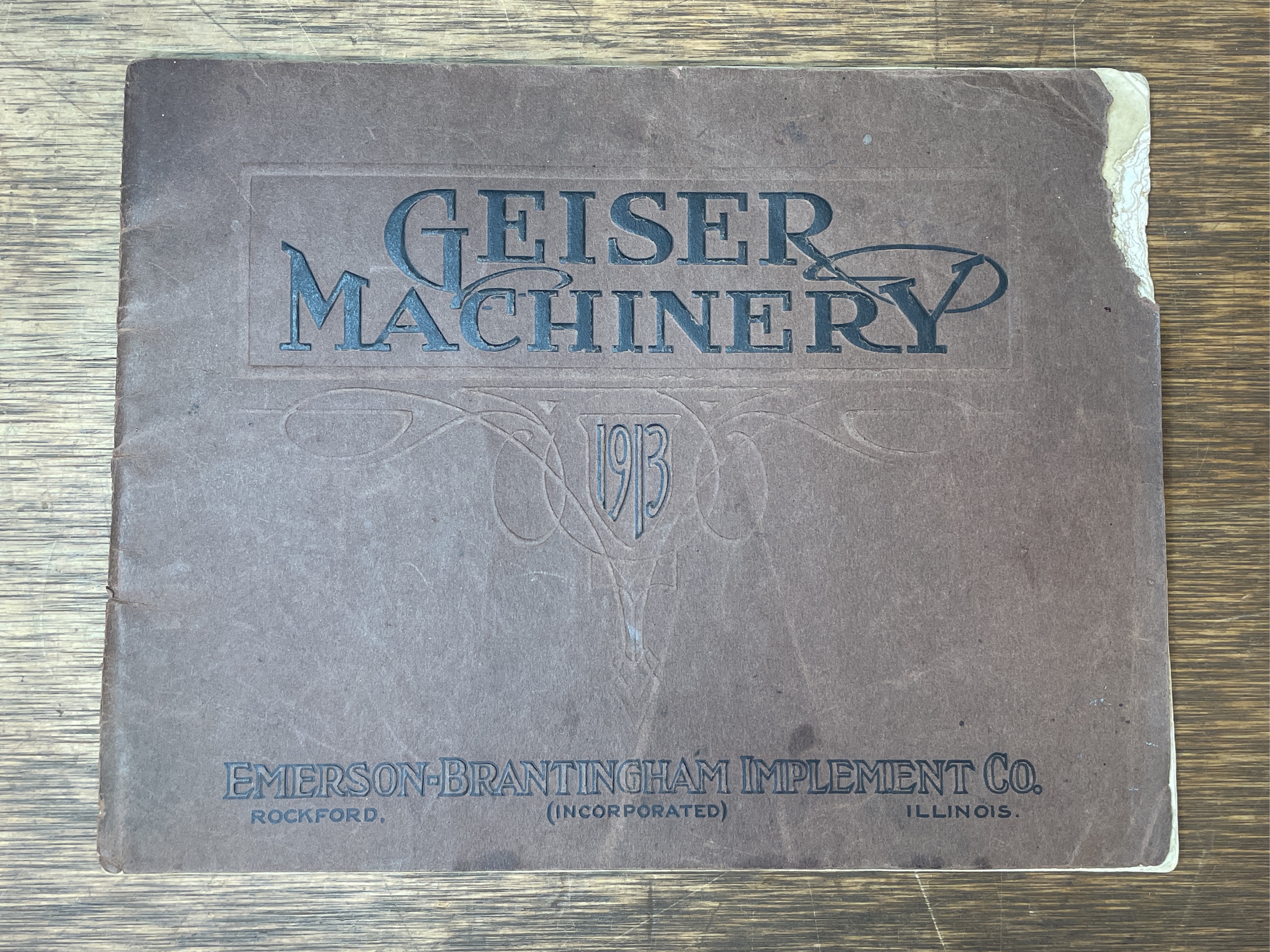 1913 Emerson-Brantingham Geiser Machinery catalog. Shows wear, staining, and damage.