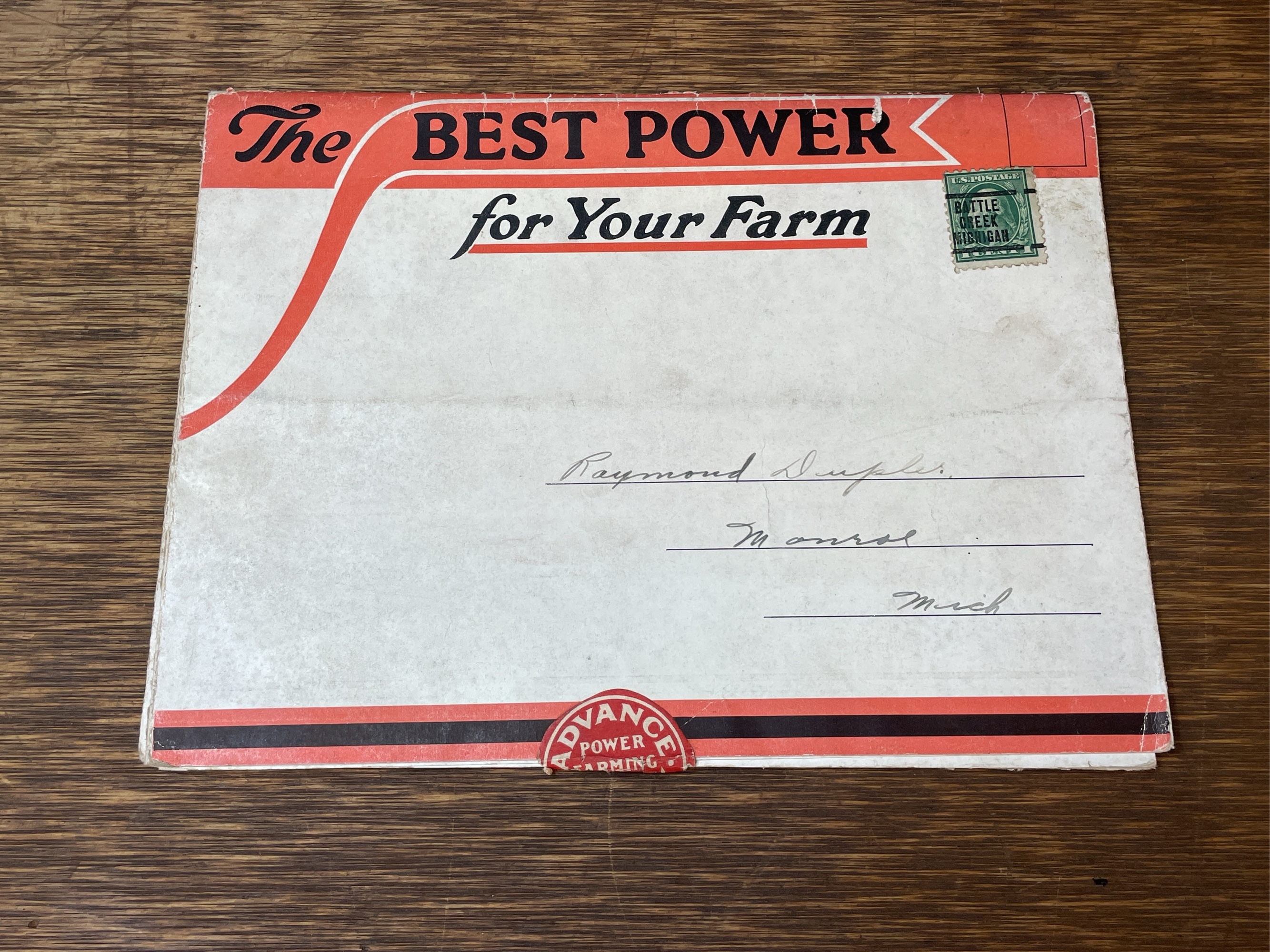 Advance-Rumely 8-16 tractor sales literature. Shows wear and staining.