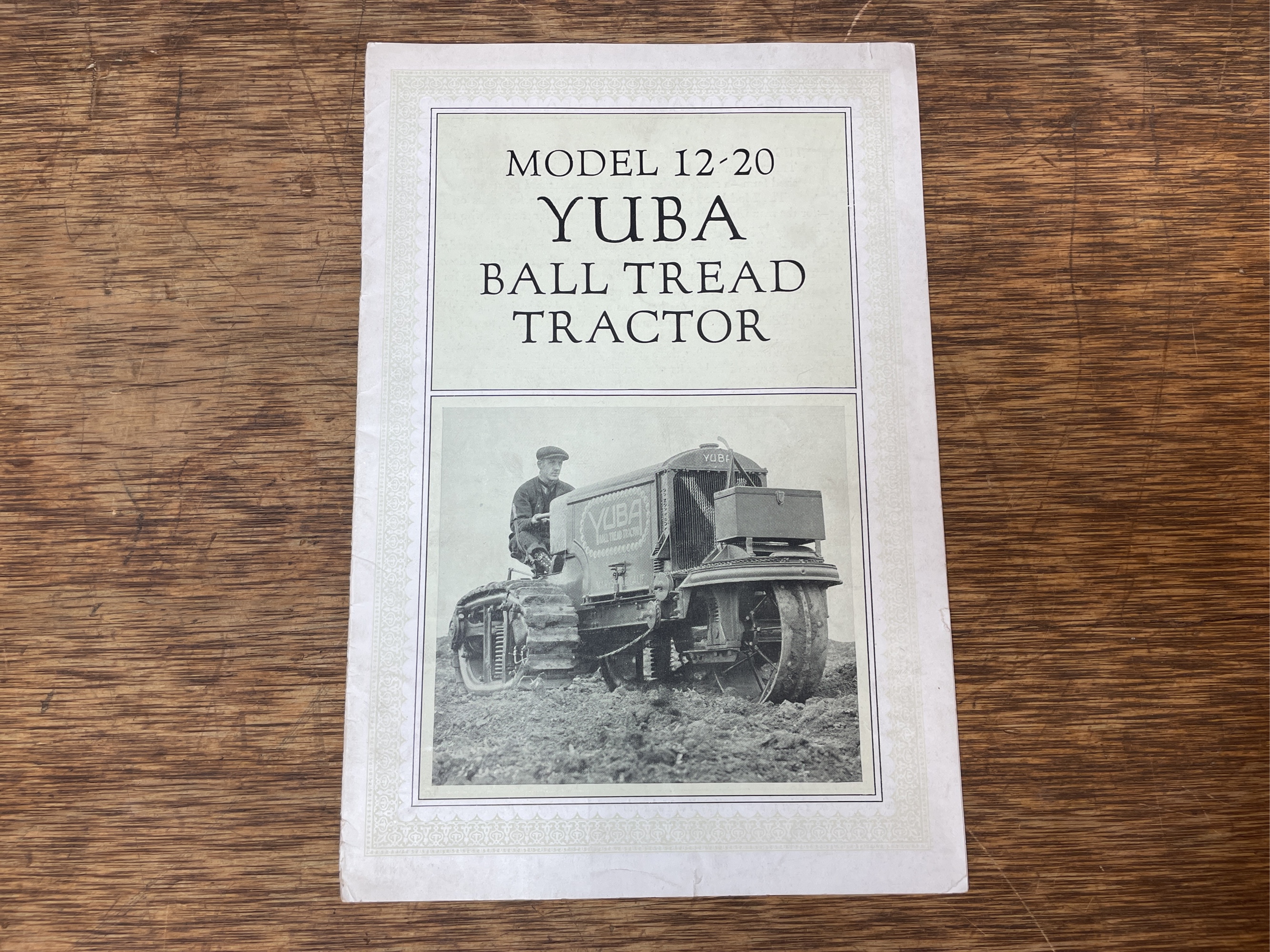 Yuba Mfg. Co. model 12-20 Ball Tread tractor sales literature. Shows wear, tears, and soiling.