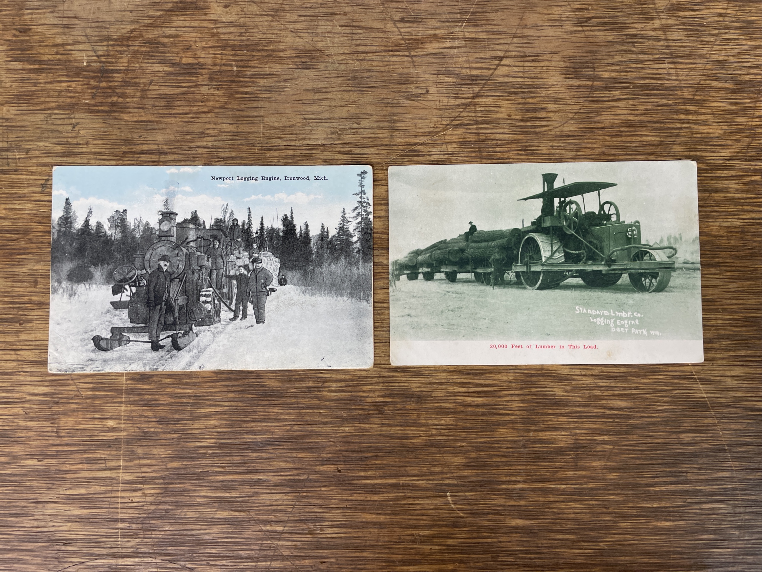 Two Steam engine logging postcards. Lombard + Holt. Both show light wear