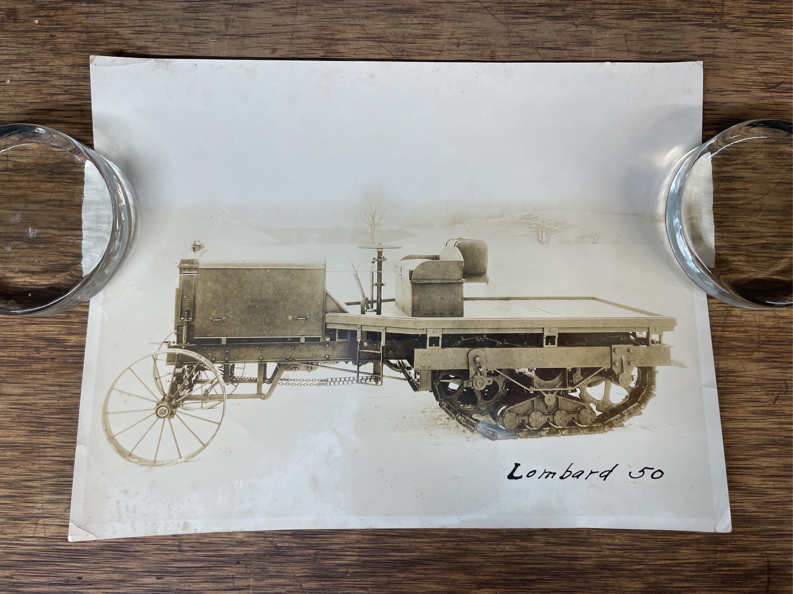 Lombard 50 tractor photo. Shows light wear. 9.5"x7".