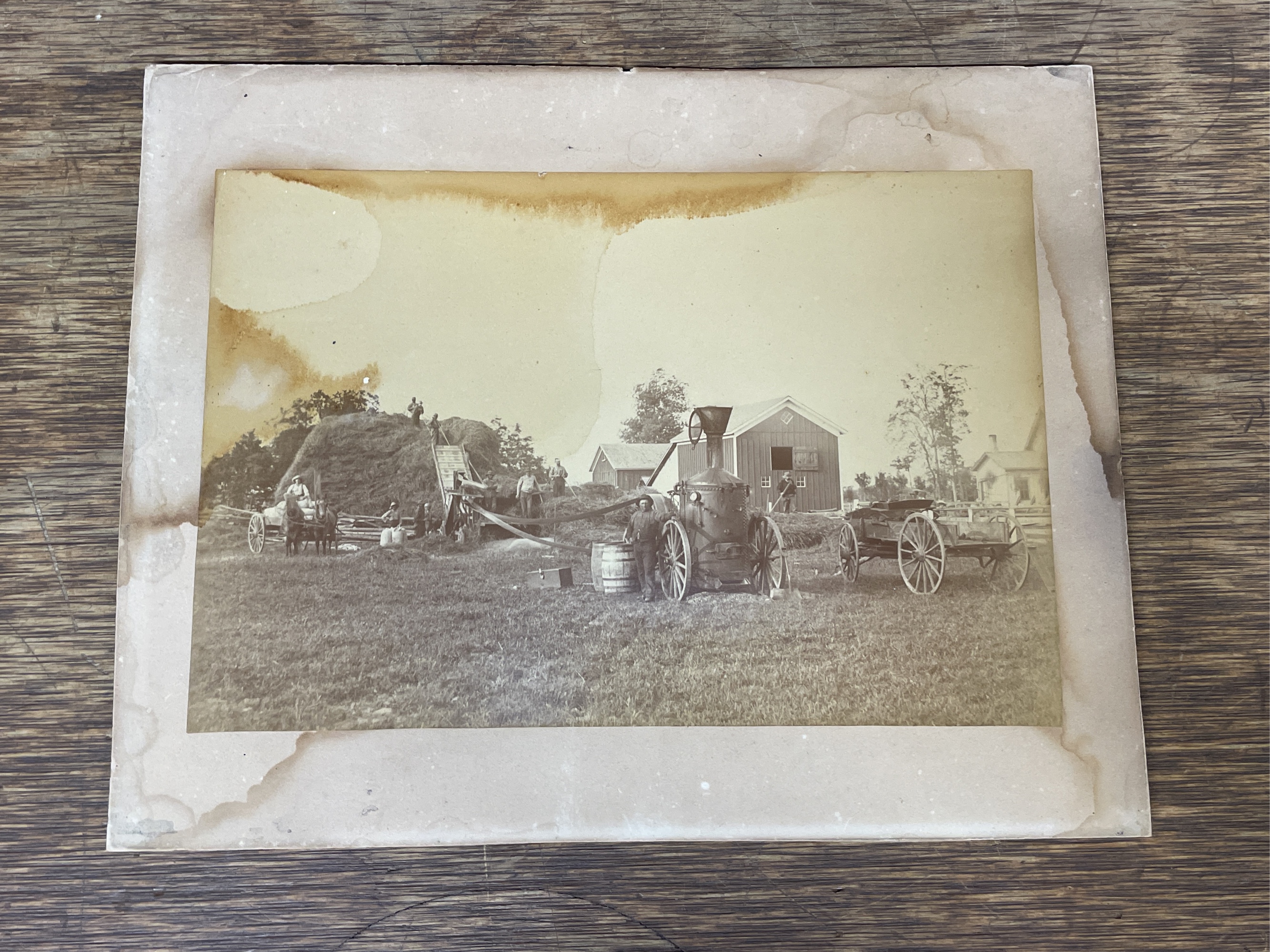 Portable steam engine photo. Shows wear and staining. 10"x8".