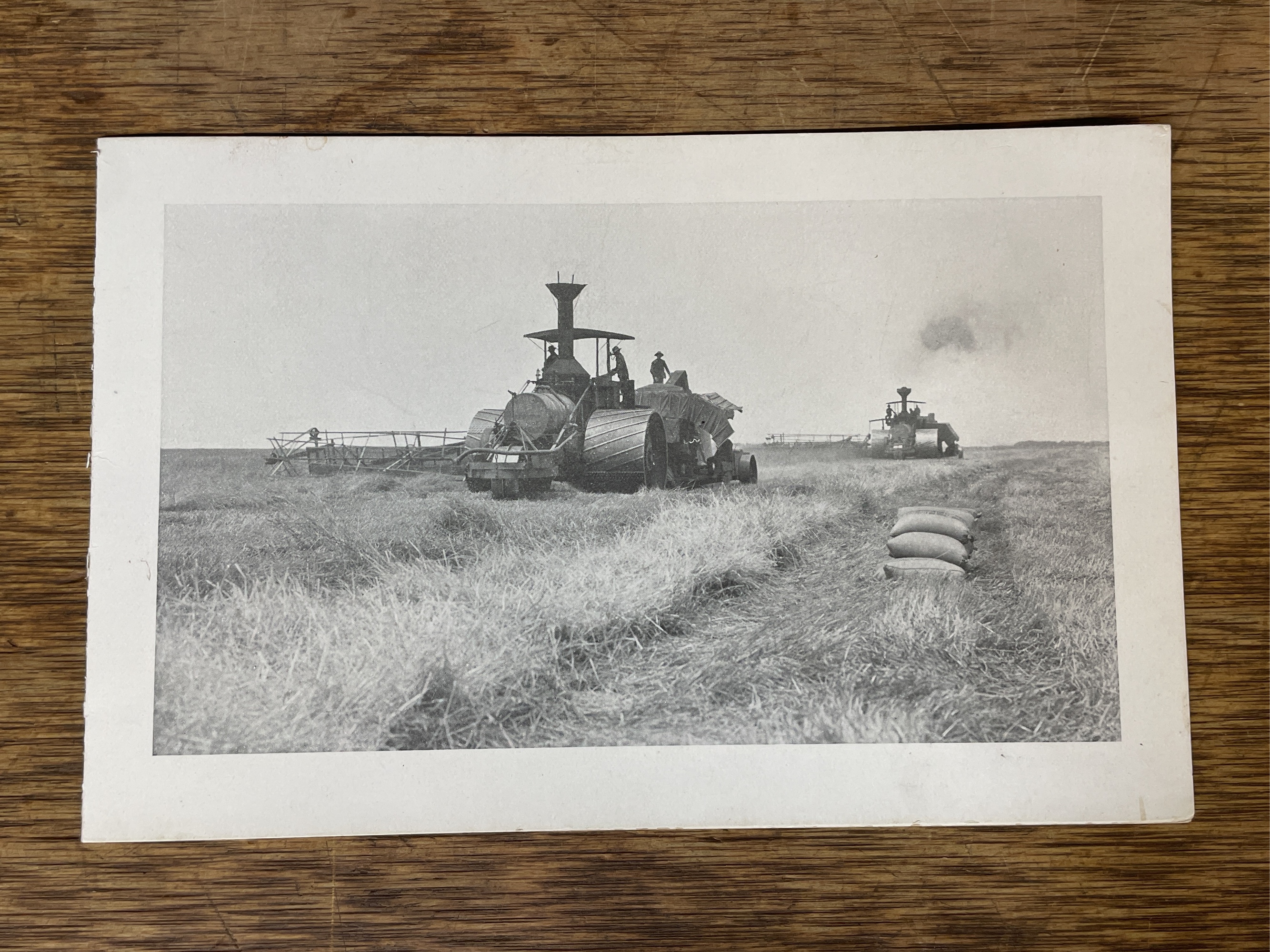 Harvesting barley in California. One picture shows 2 Best steam engines pulling combines. Good condition. 8"x5.25".