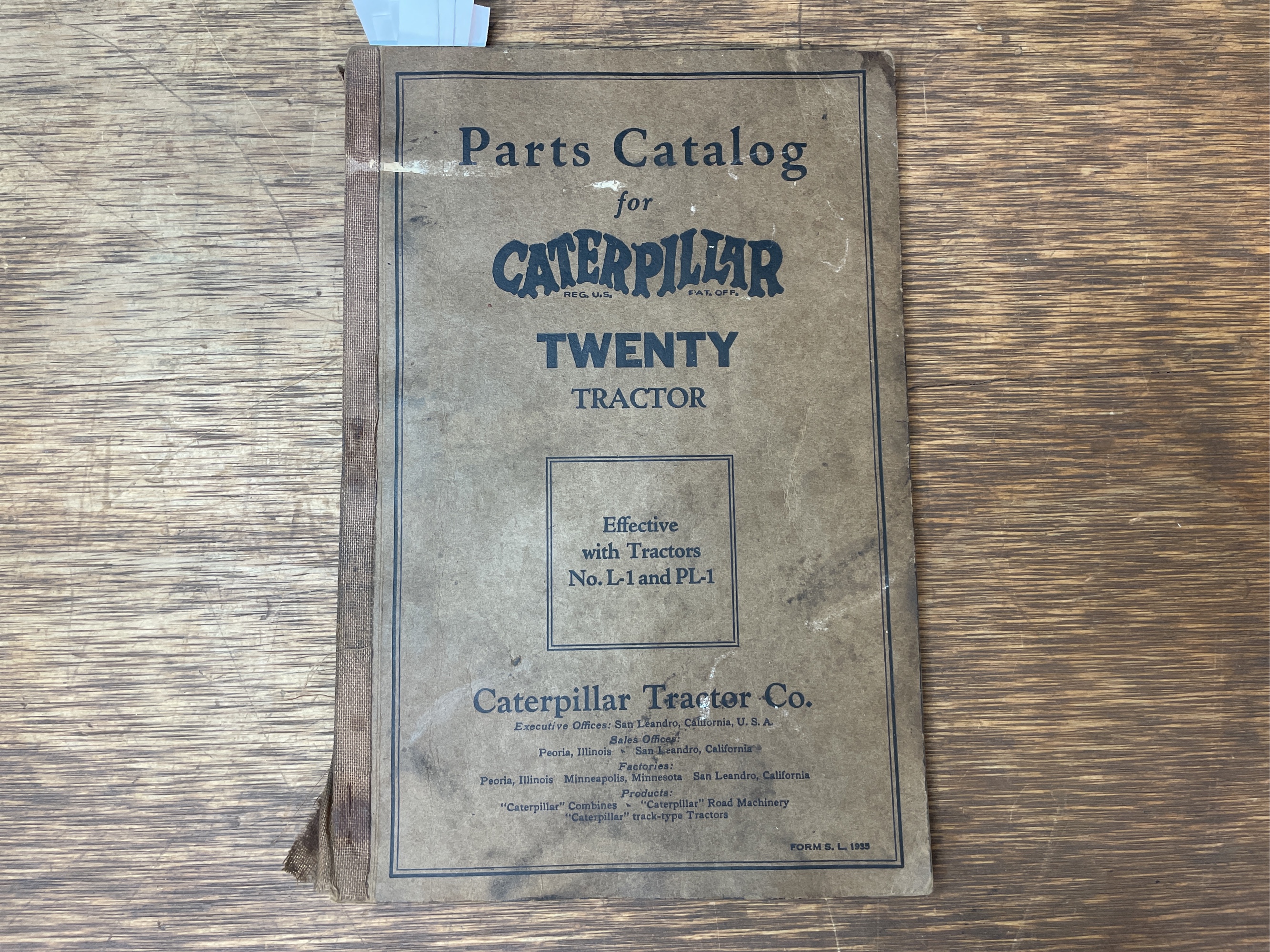 Caterpillar Twenty crawler tractor Parts Catalog. Shows wear and soiling.
