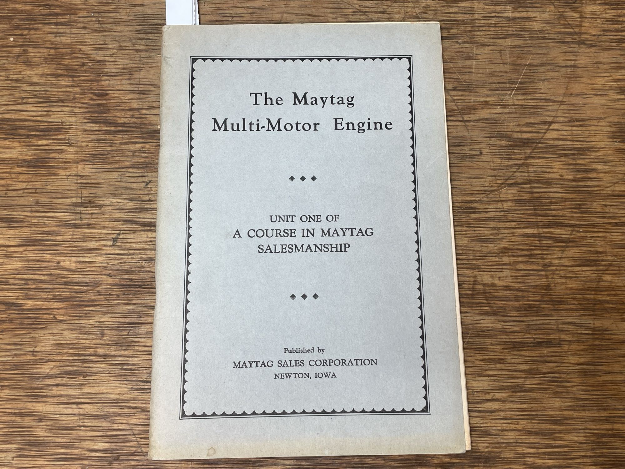 1934 Maytag Multi-Motor Engine unit one of a course in Maytag salemanship booklet. Shows light wear and soiling.
