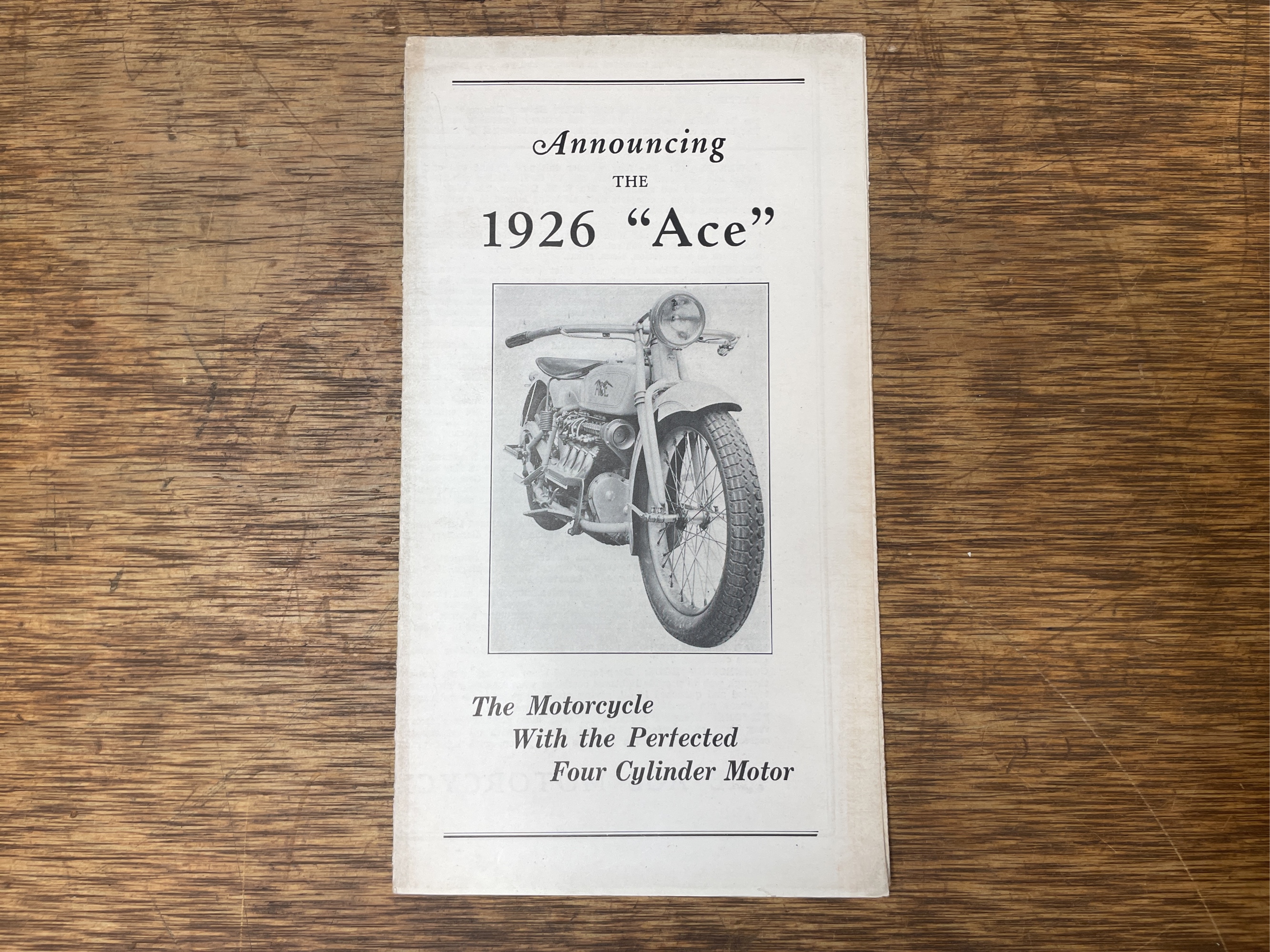1926 Ace Motorcycle Corp. sales literature. Shows light wear.