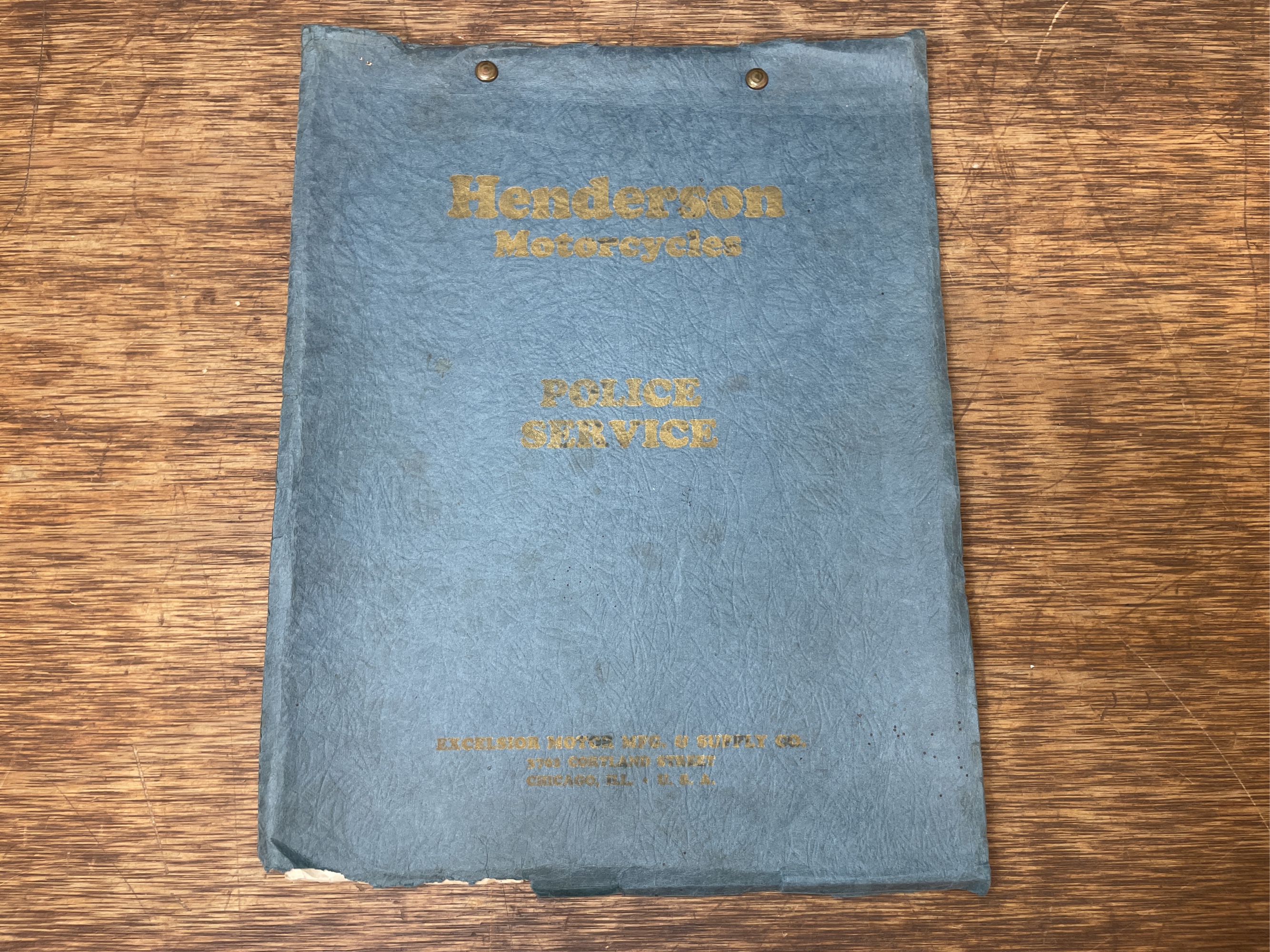 1930 Excelsior Motor Mfg. Henderson Motorcycles in Police Service literature. Shows wear and staining.
