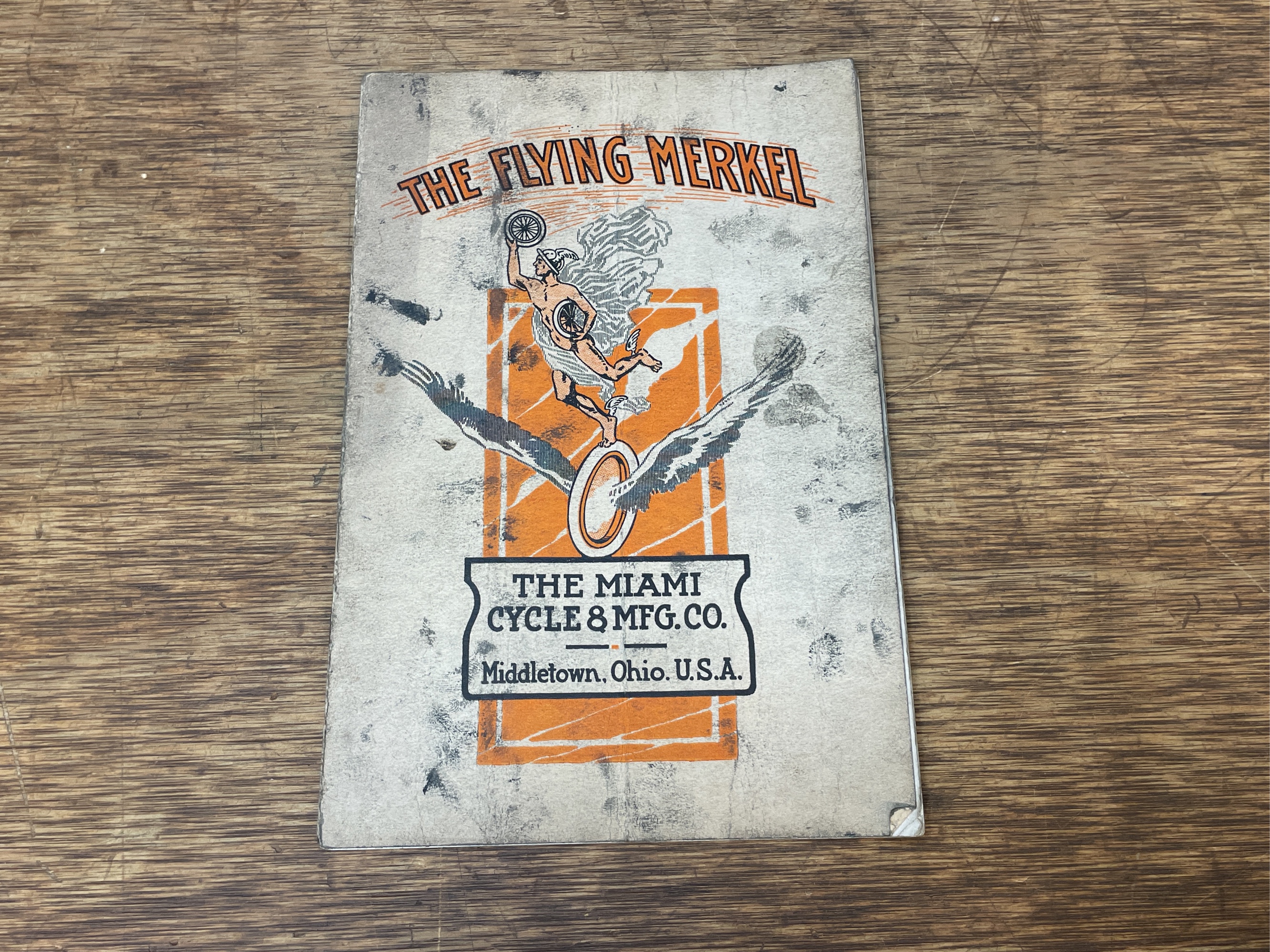 1915 Miami Cycle & Mfg. Co. Flying Merkel Motorcycle catalog. Shows wear, soiling, and has been folded vertically.