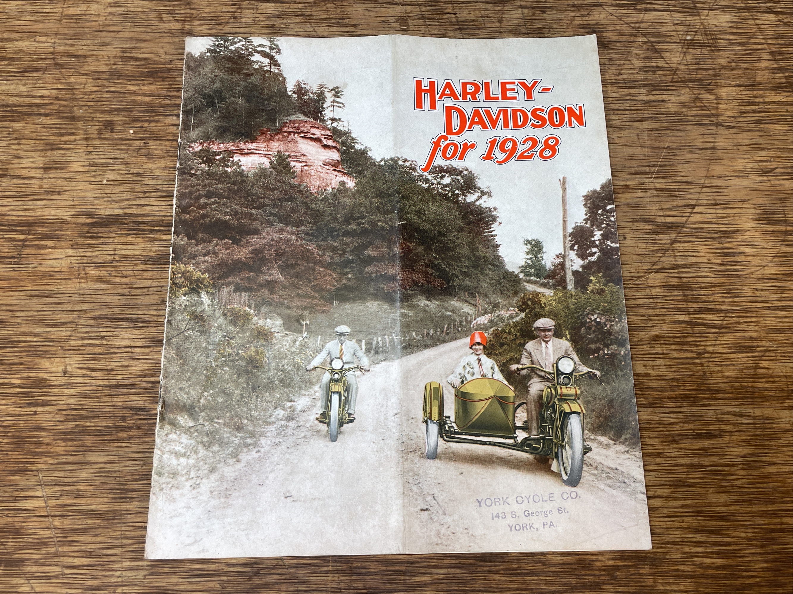 1928 Harley-Davidson sales literature. Shows light wear and staining.