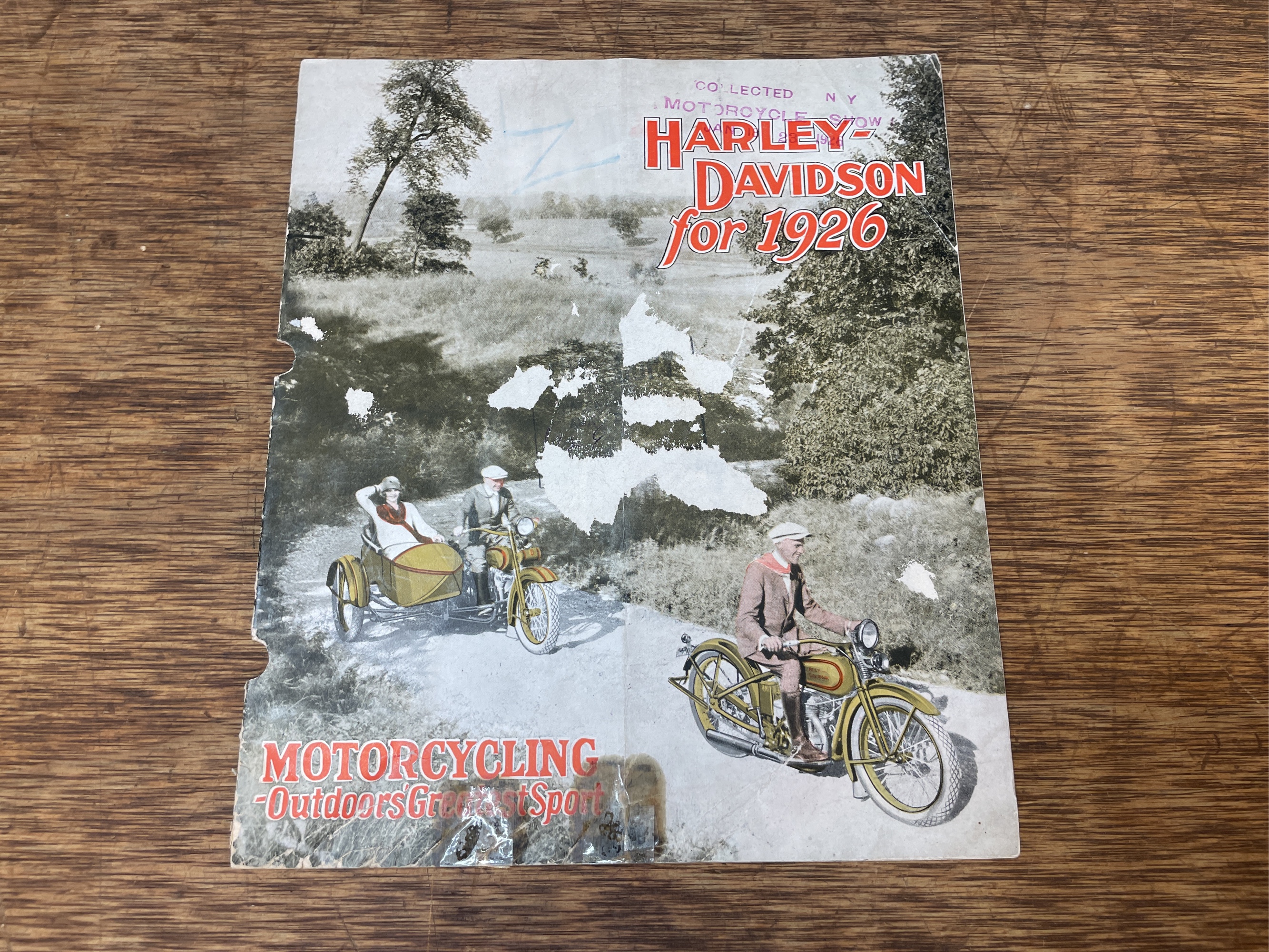 1926 Harley-Davidson sales literature. Shows wear and damage.