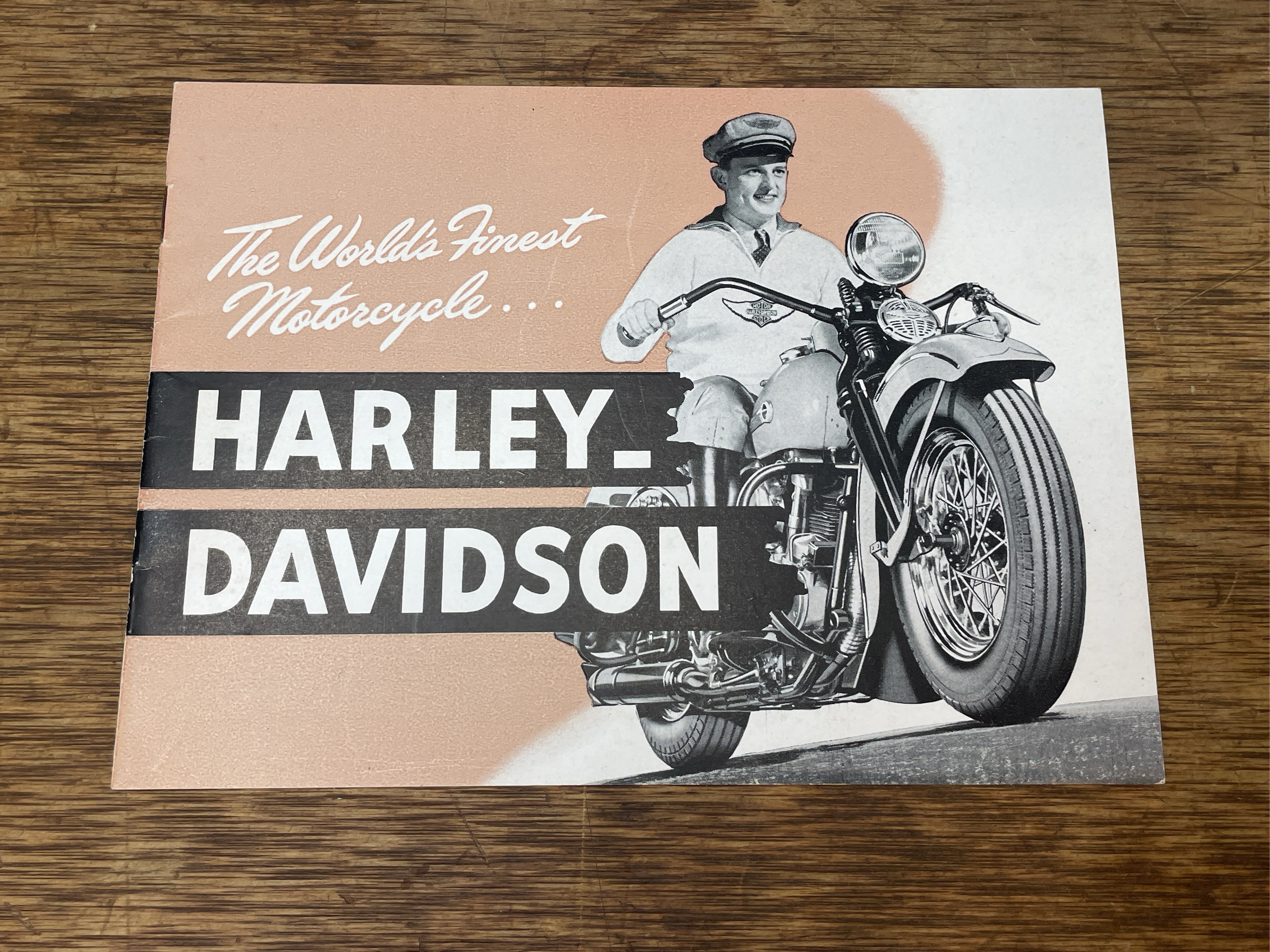 Harley-Davidson Motorcycles sales literature. Shows light wear and staining.