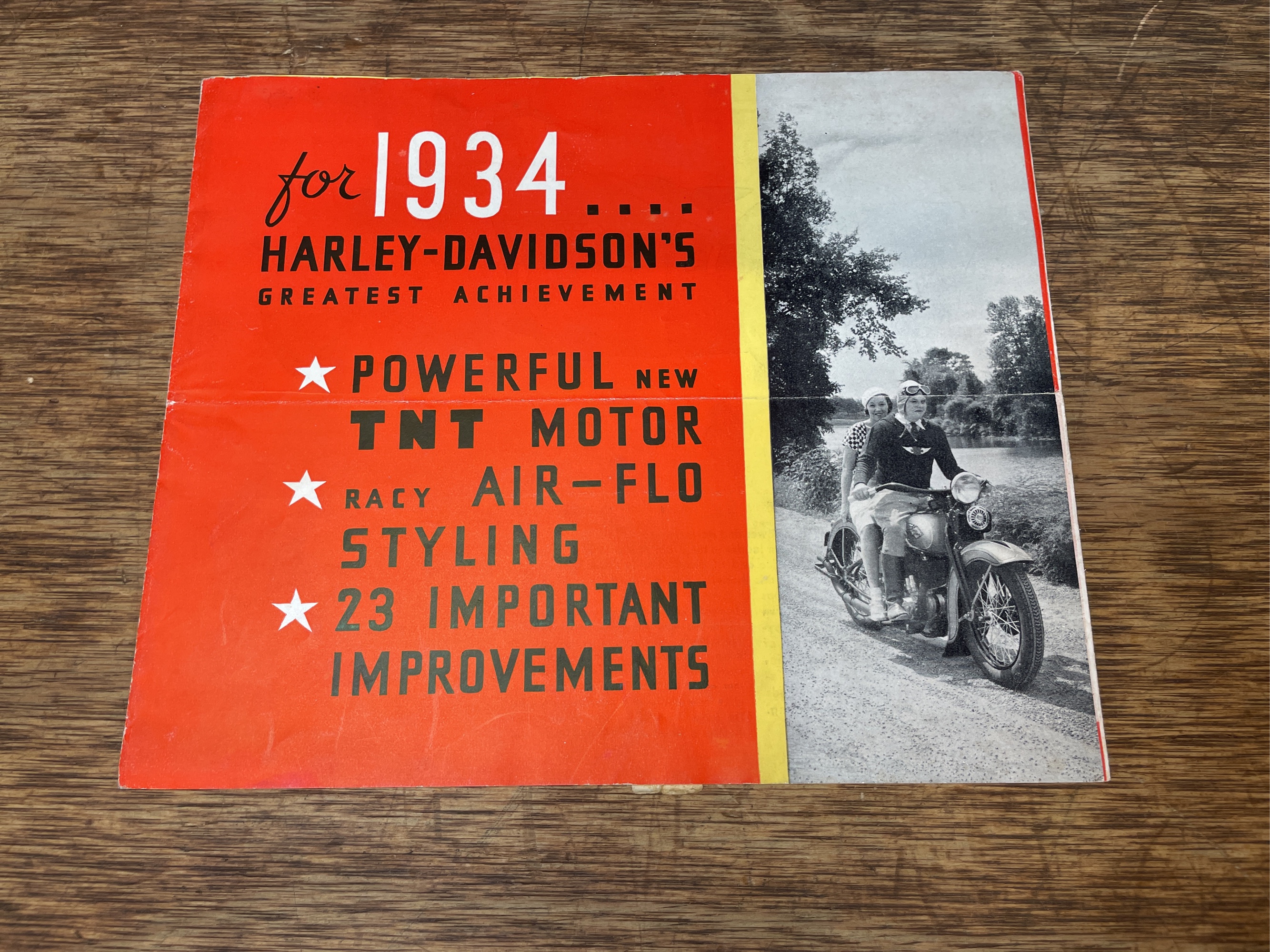 1934 Harley-Davidson Motorcycles sales literature. Shows wear and soiling.