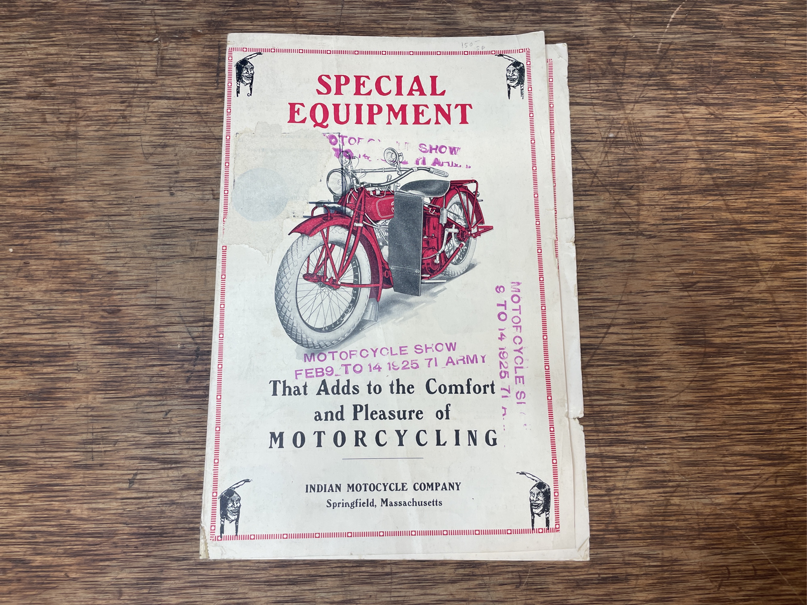 Indian Motorcycle Special Equipment catalog. Shows wear, damage, and tape.