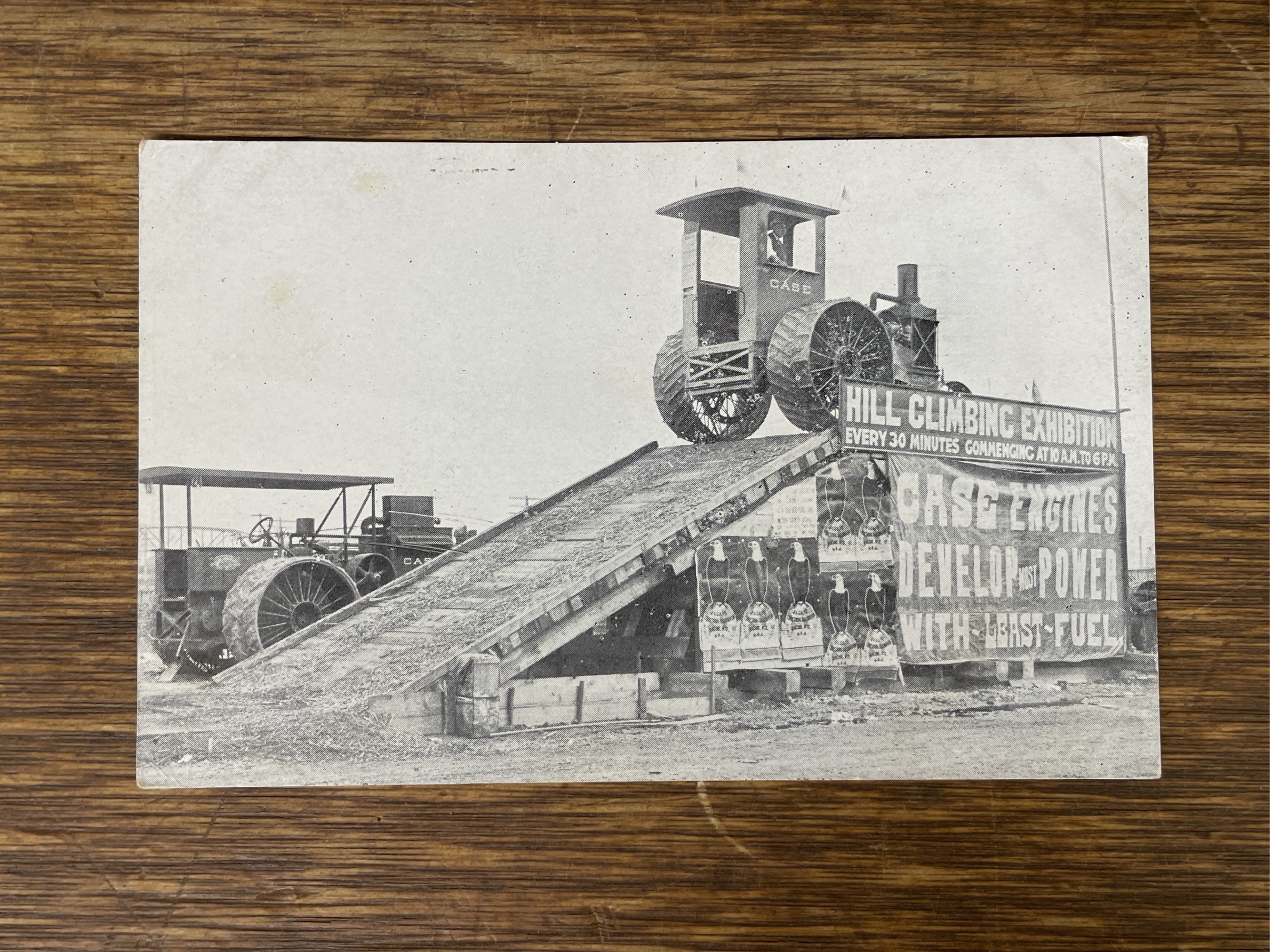 Case tractor hill climb postcard. Shows light wear.