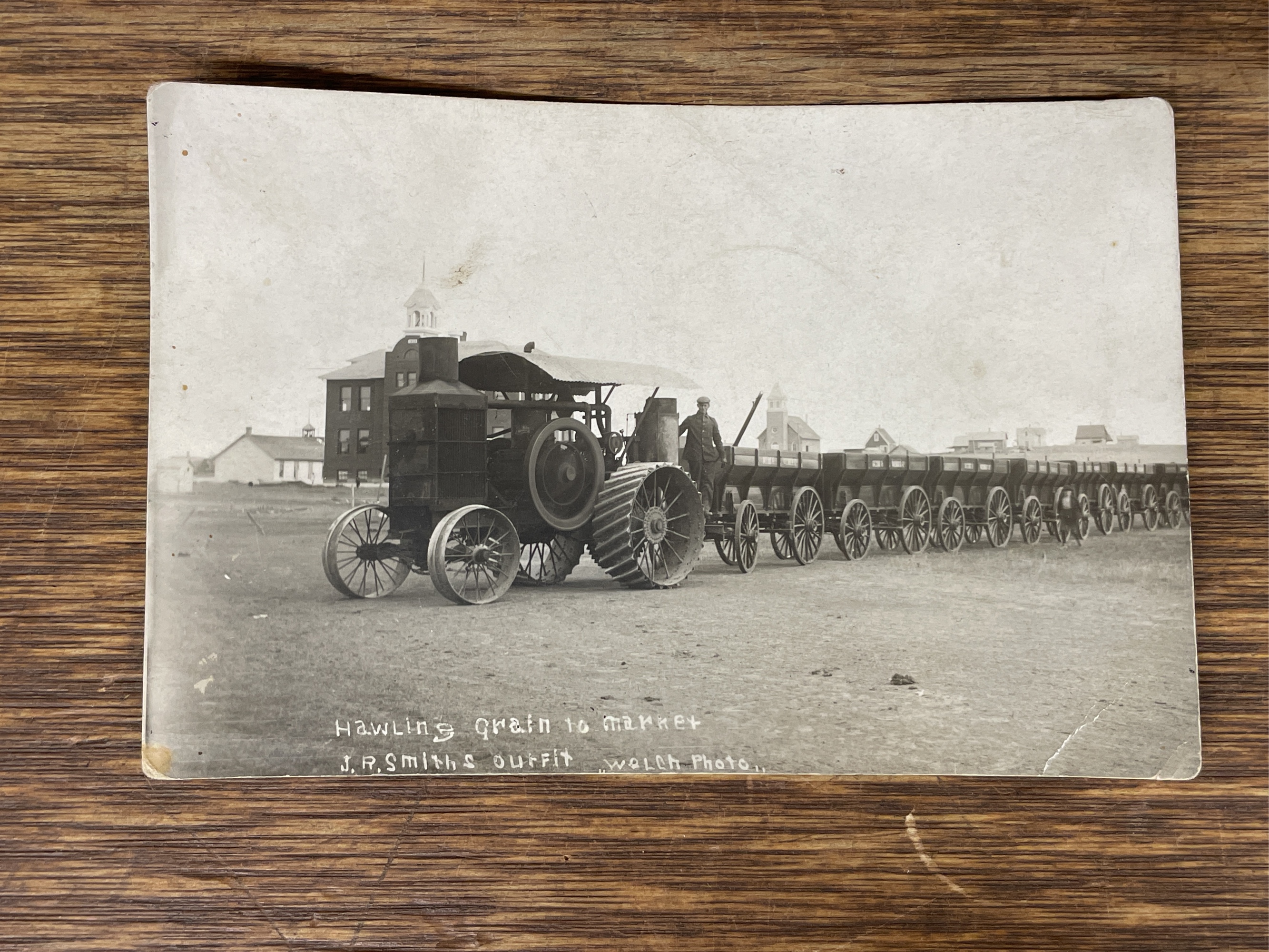 Hart-Parr tractor photo postcard. Shows wear and soiling.
