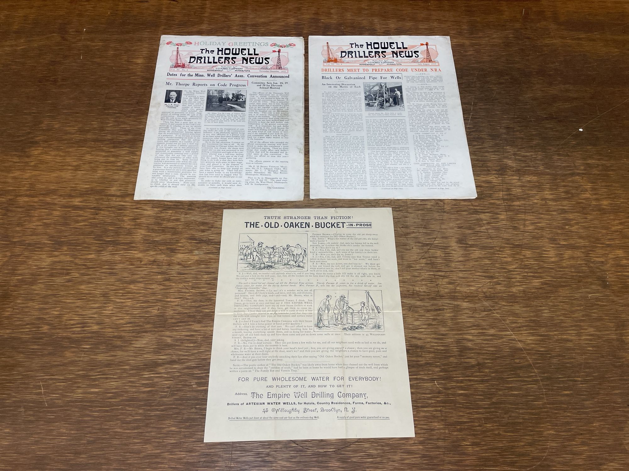 Lot of 3 literature on drilling including two 1933 Howell Drillers News. Varying condition.