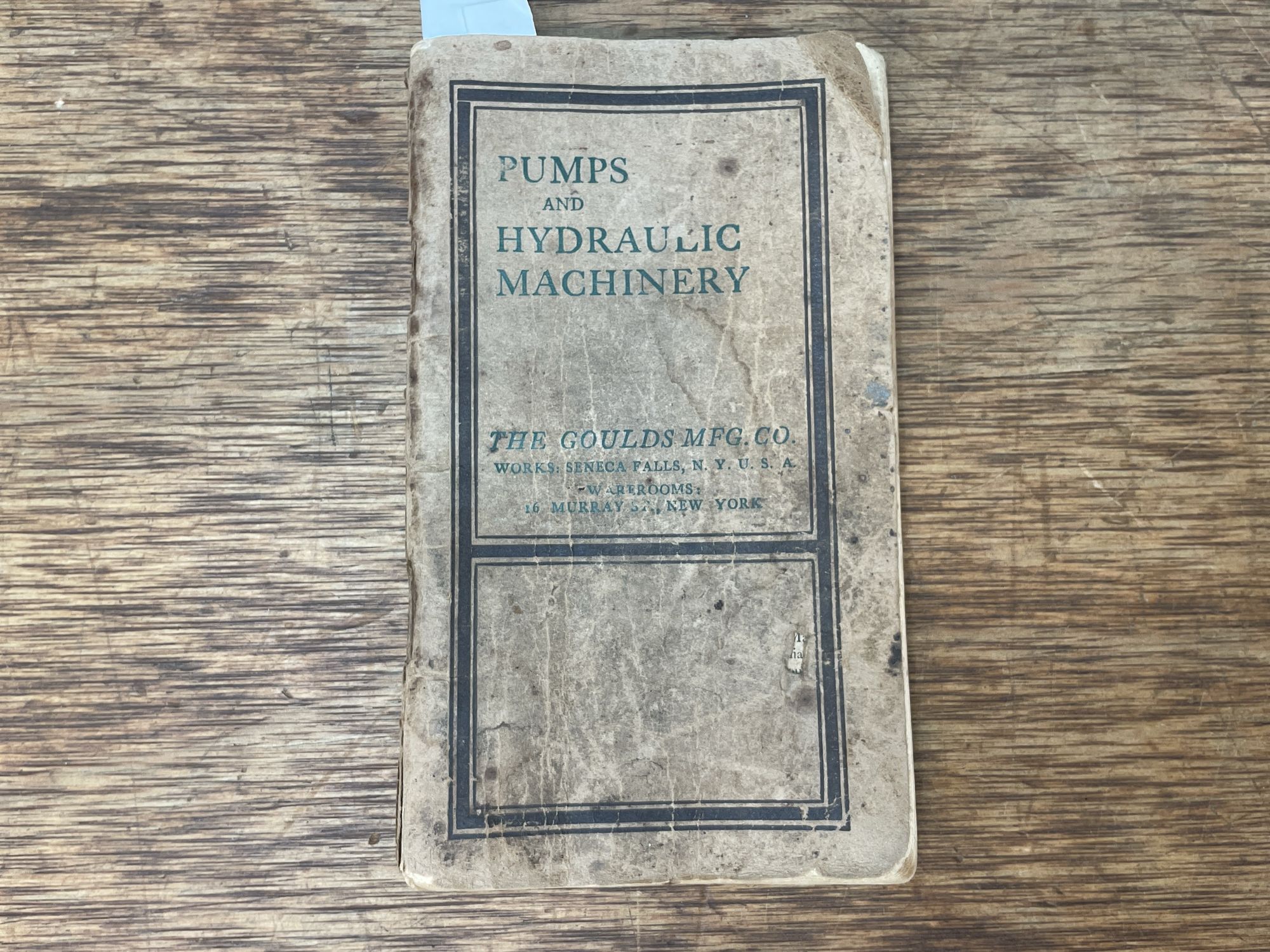The Gould Mfg. Co. Pumps + Hydraulic Machinery pocket catalog. Show wear, staining, and soiling.