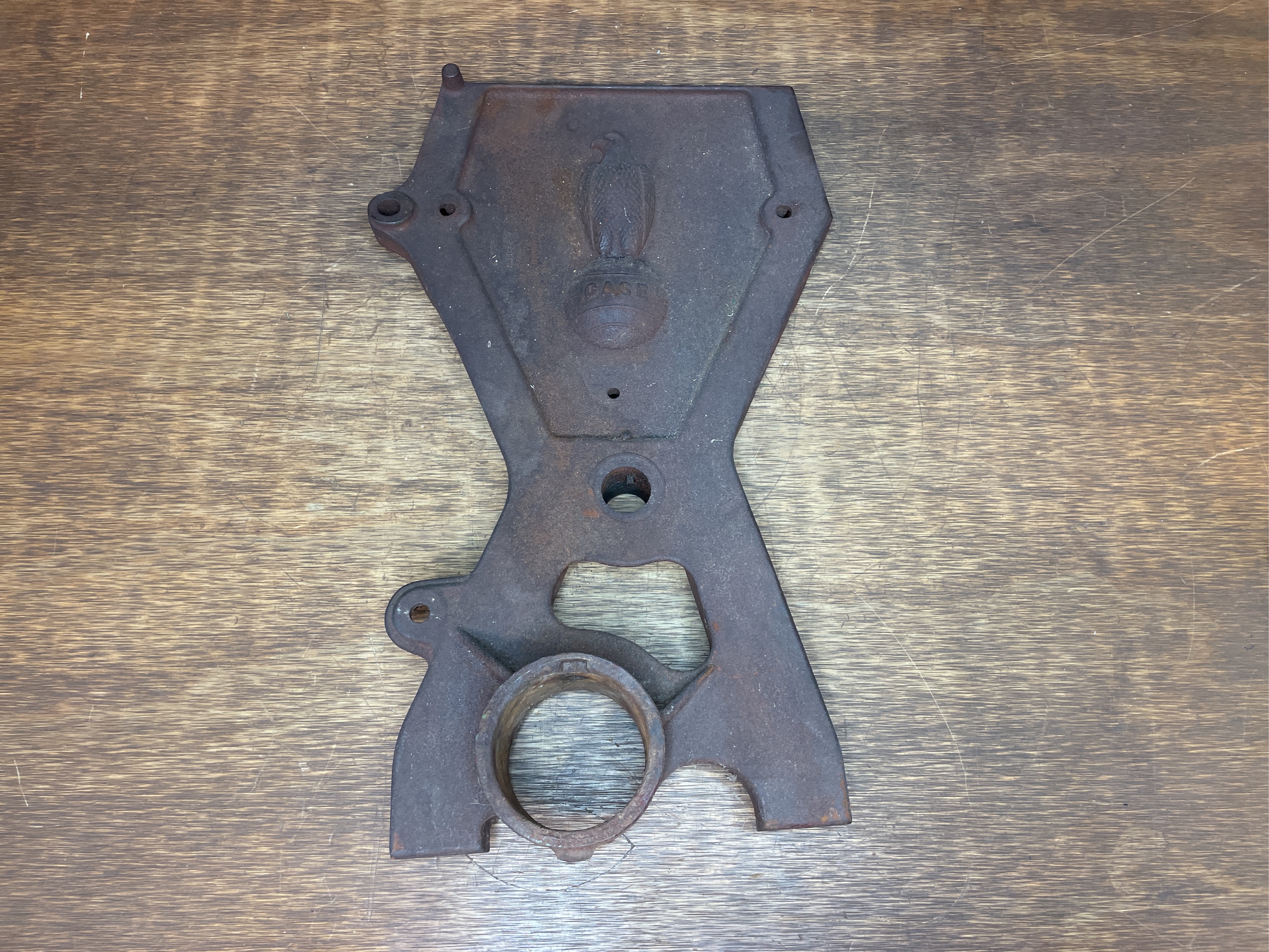 Case cast iron grain drill end. Large. P/N 243L. Rusty with some original paint. Great display piece.