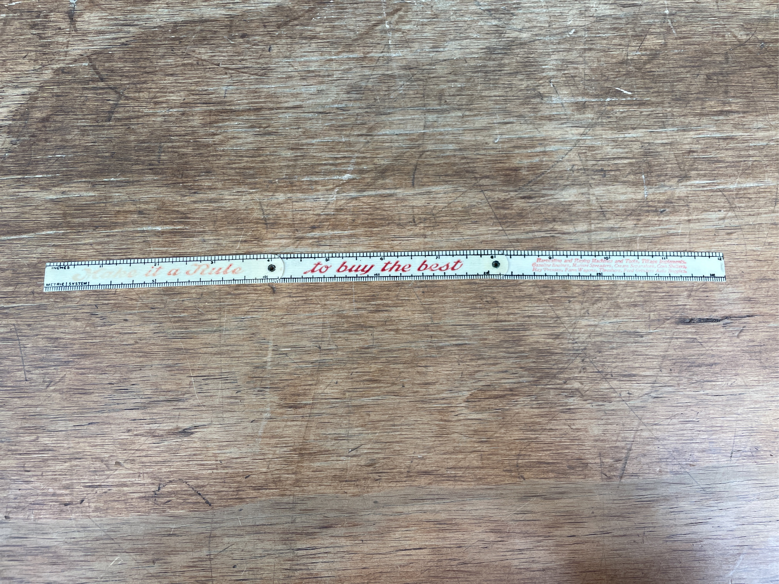 1909 IHC celluloid folding ruler. Shows light wear and fading.