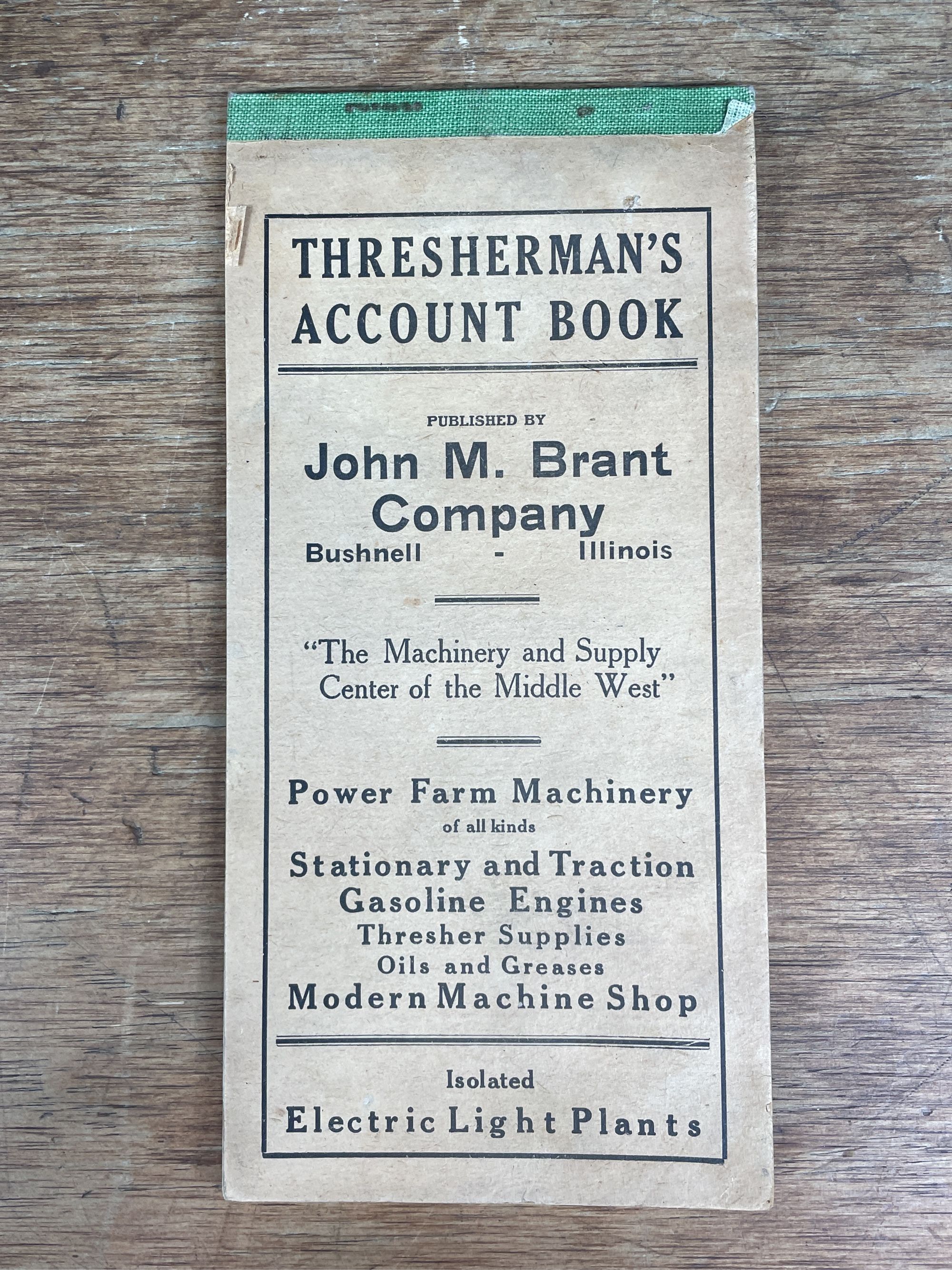 John M. Brant Co. Thersherman's Account Book. Shows light wear.