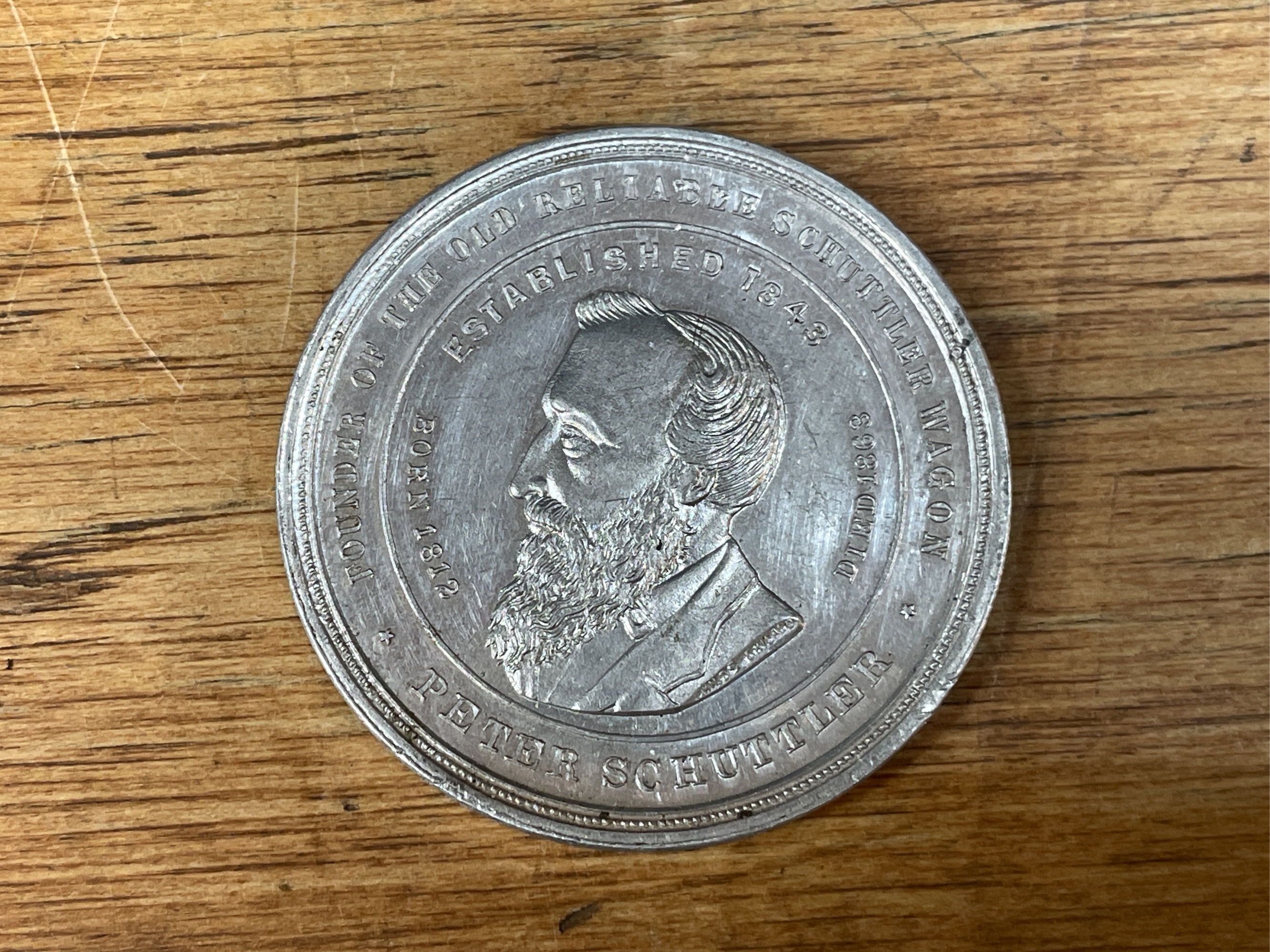 1893 Schuttler Wagon Columbian Exposition medallion. Shows wear.