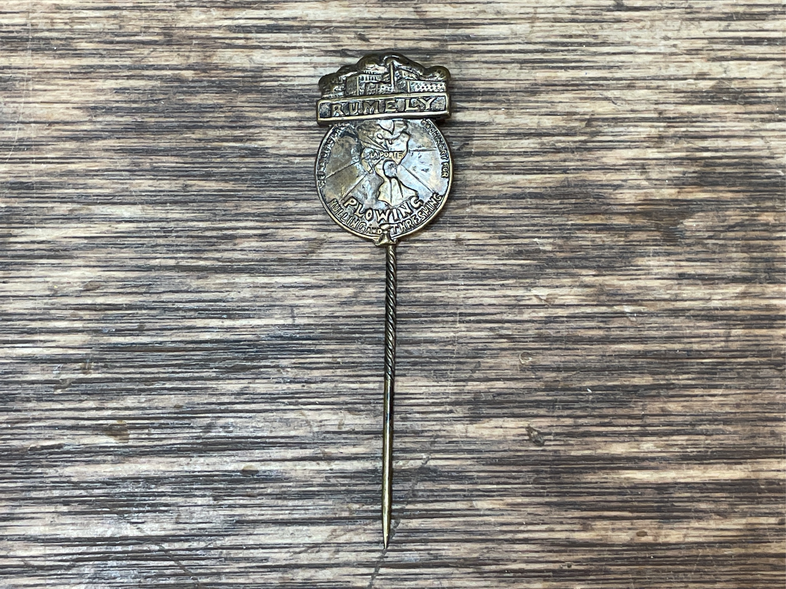 Rumely straight pin. Shows light wear.
