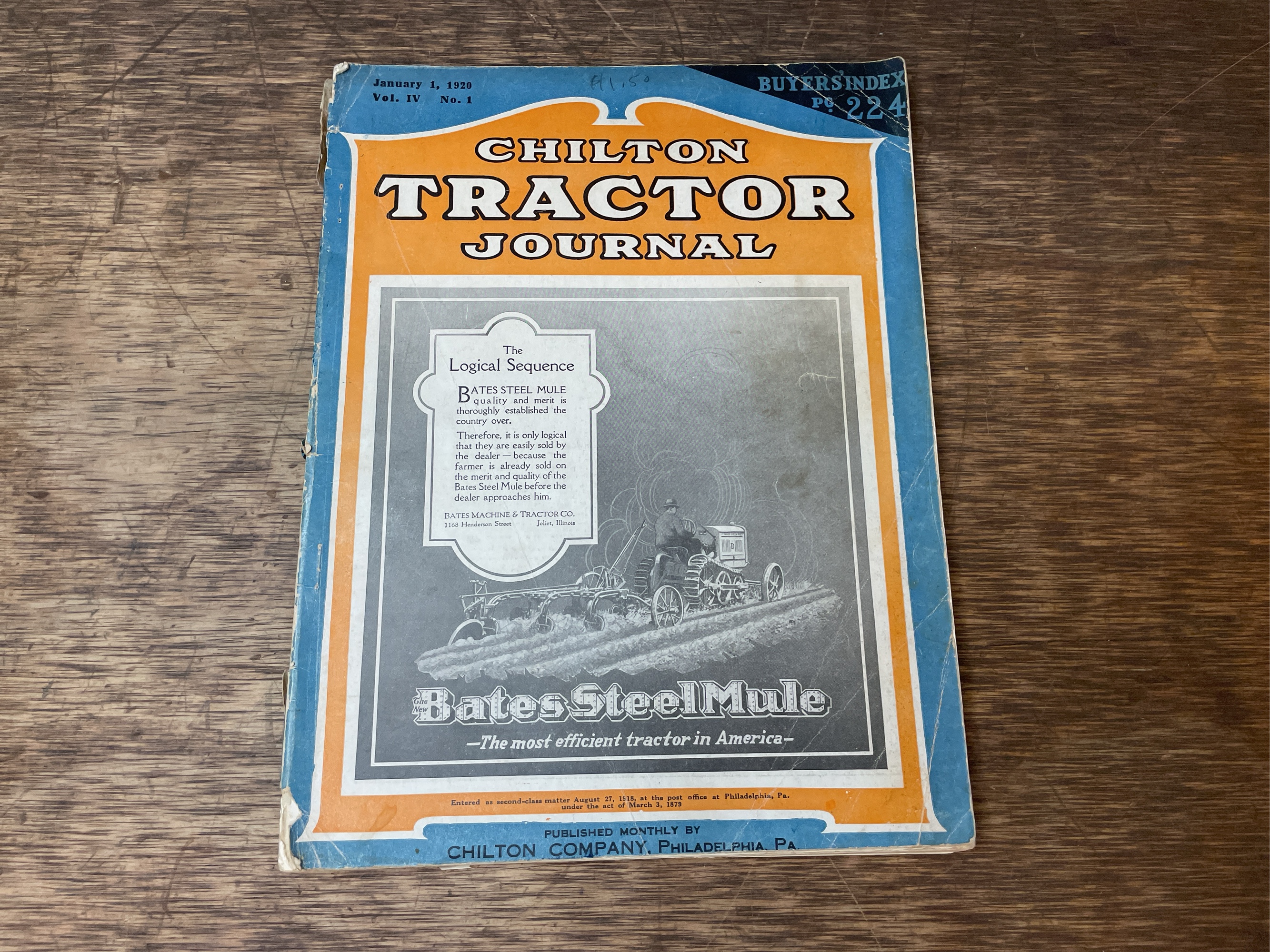 January 1920 Chilton Tractor Journal. Shows wear, soiling, and writing on back cover.