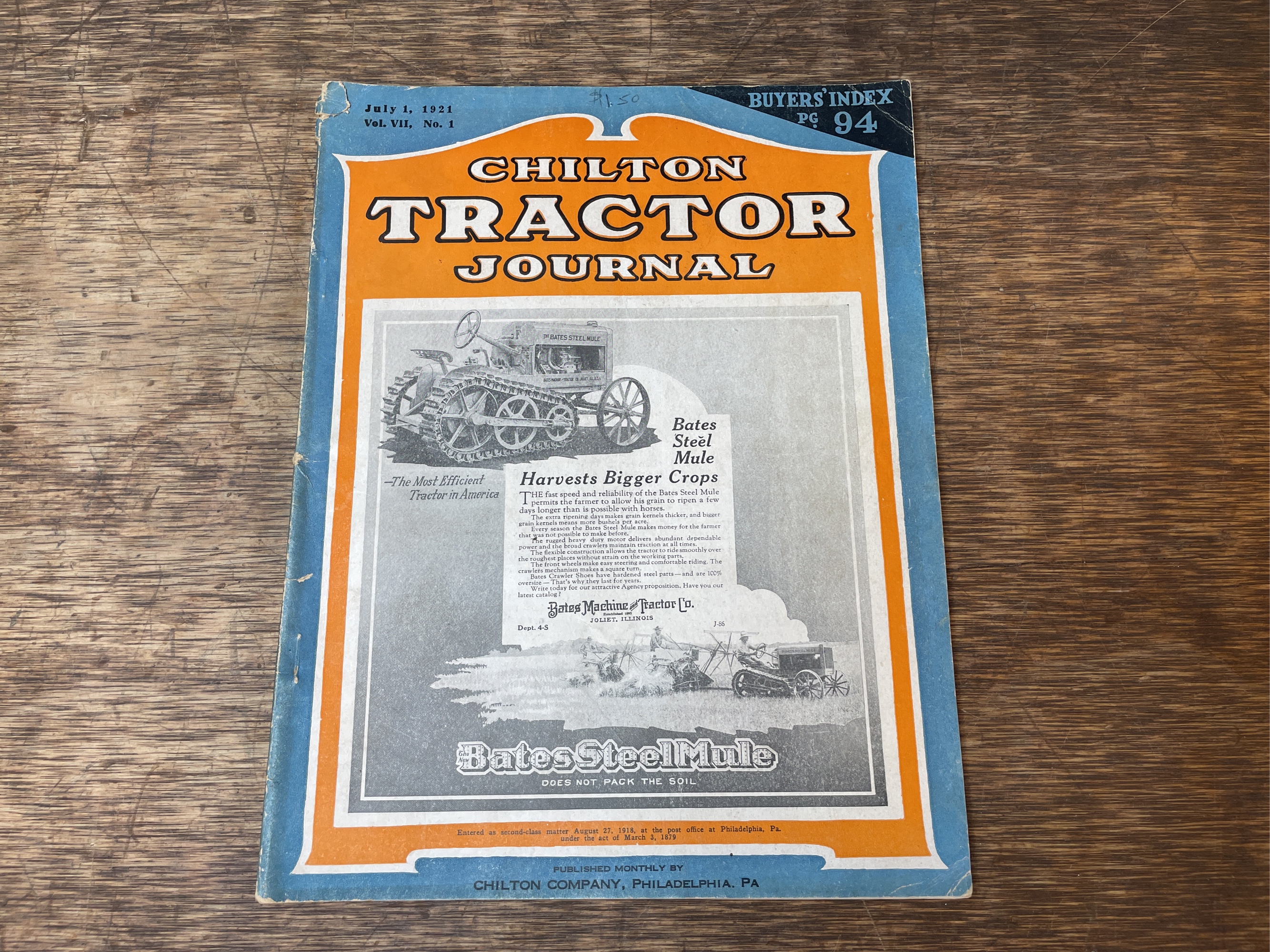 July 1921 Chilton Tractor Journal. Shows wear.