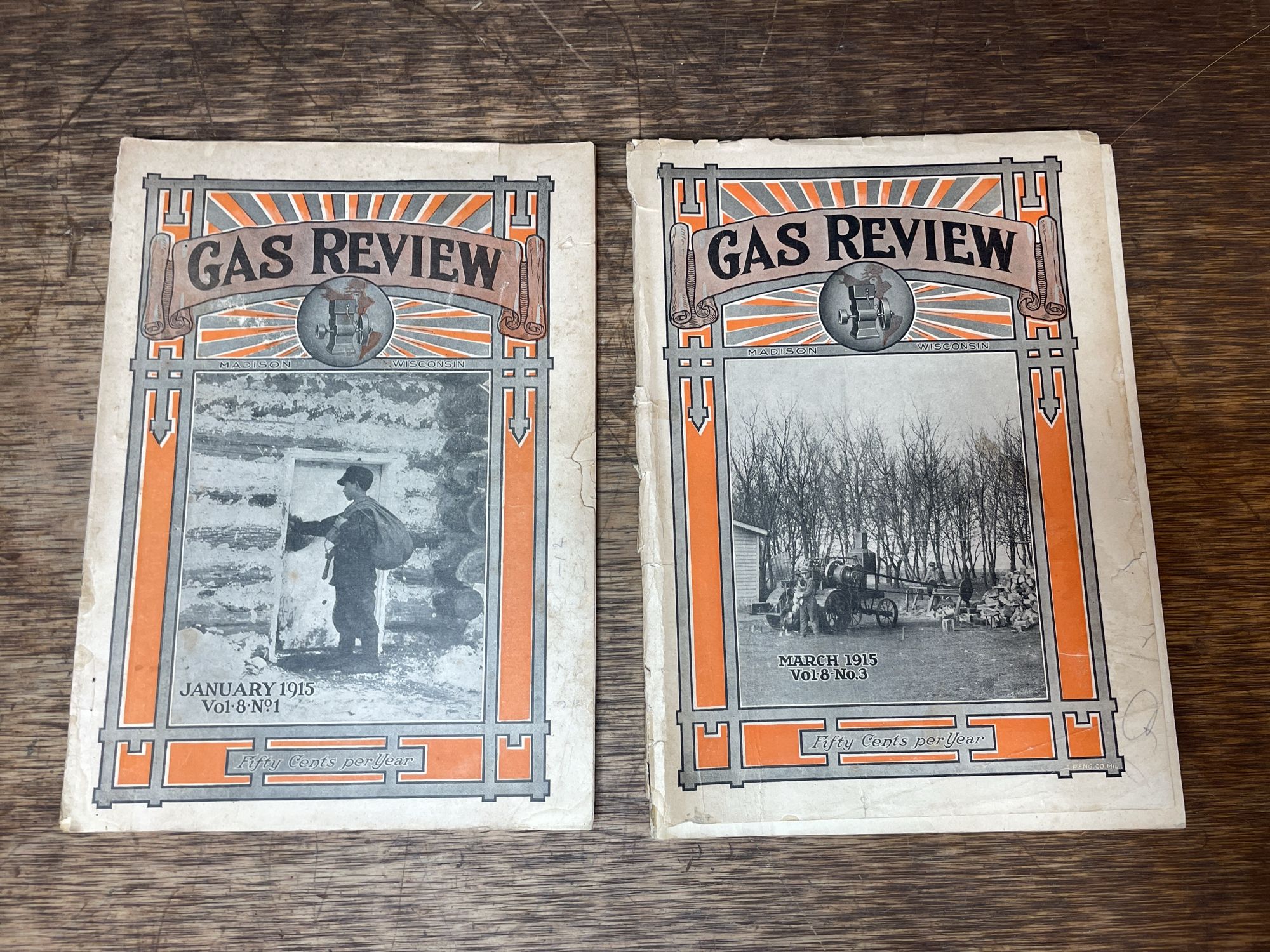 January + March 1915 Gas Review magazines. Both show wear and soiling.