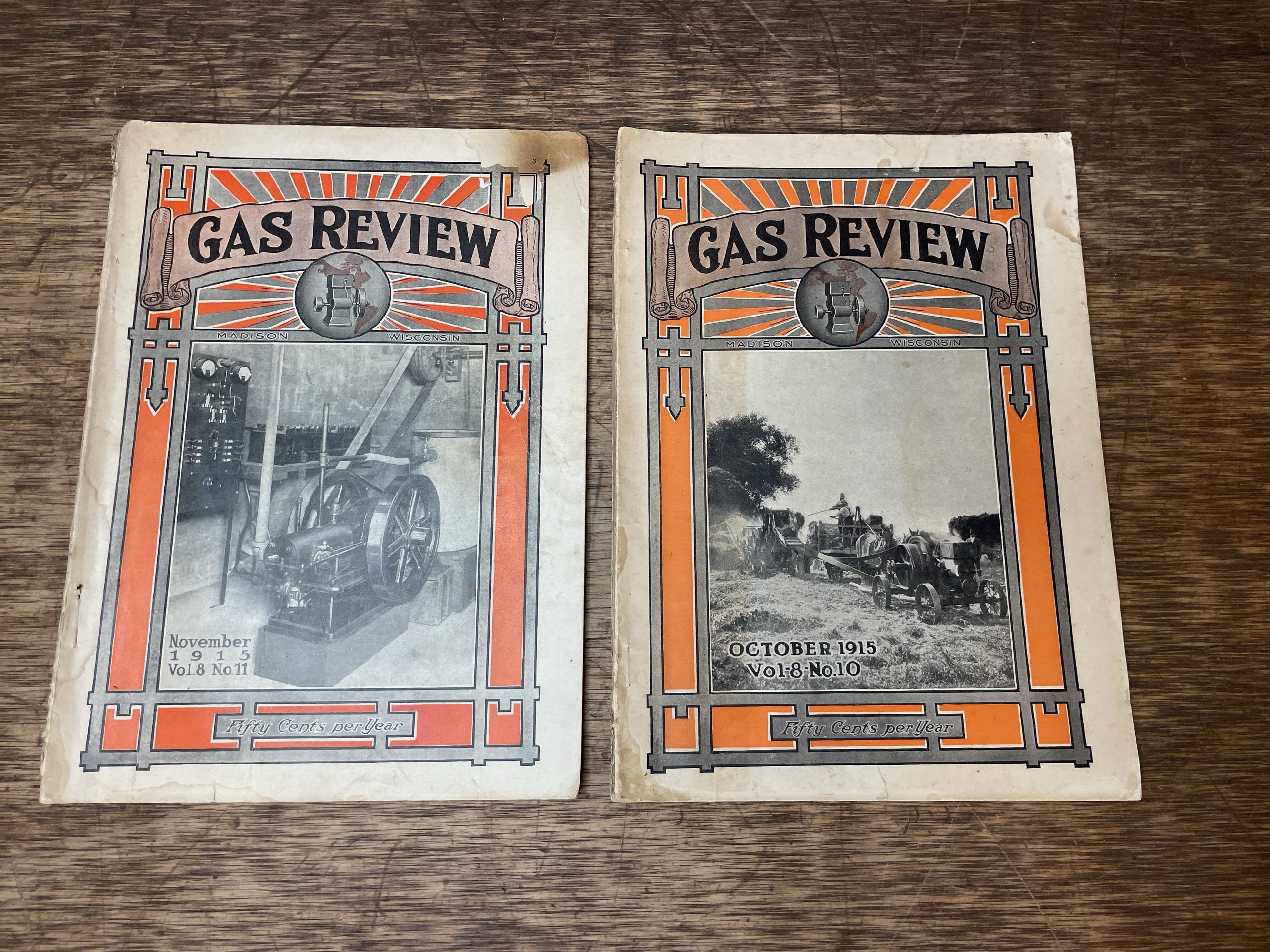 October + November 1915 Gas Review magazines. Both show wear, damage, and soiling.