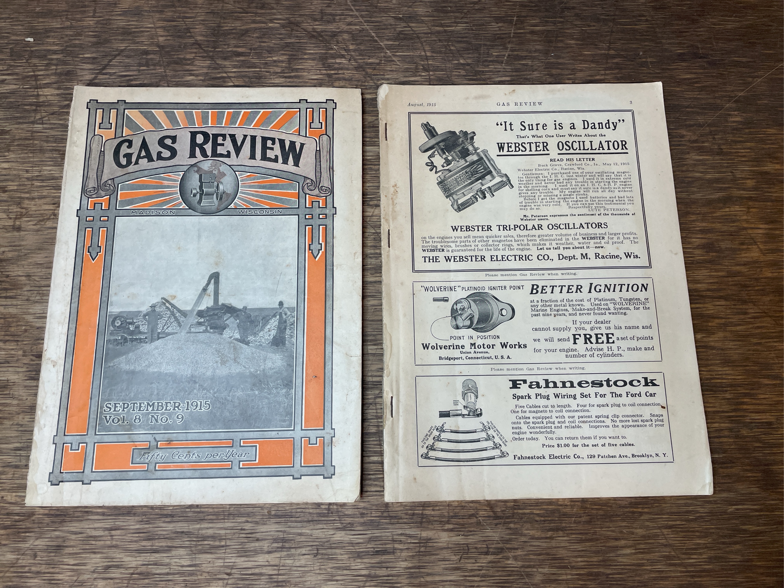 August + September 1915 Gas Review magazines. Both show wear and soiling. August missing covers.