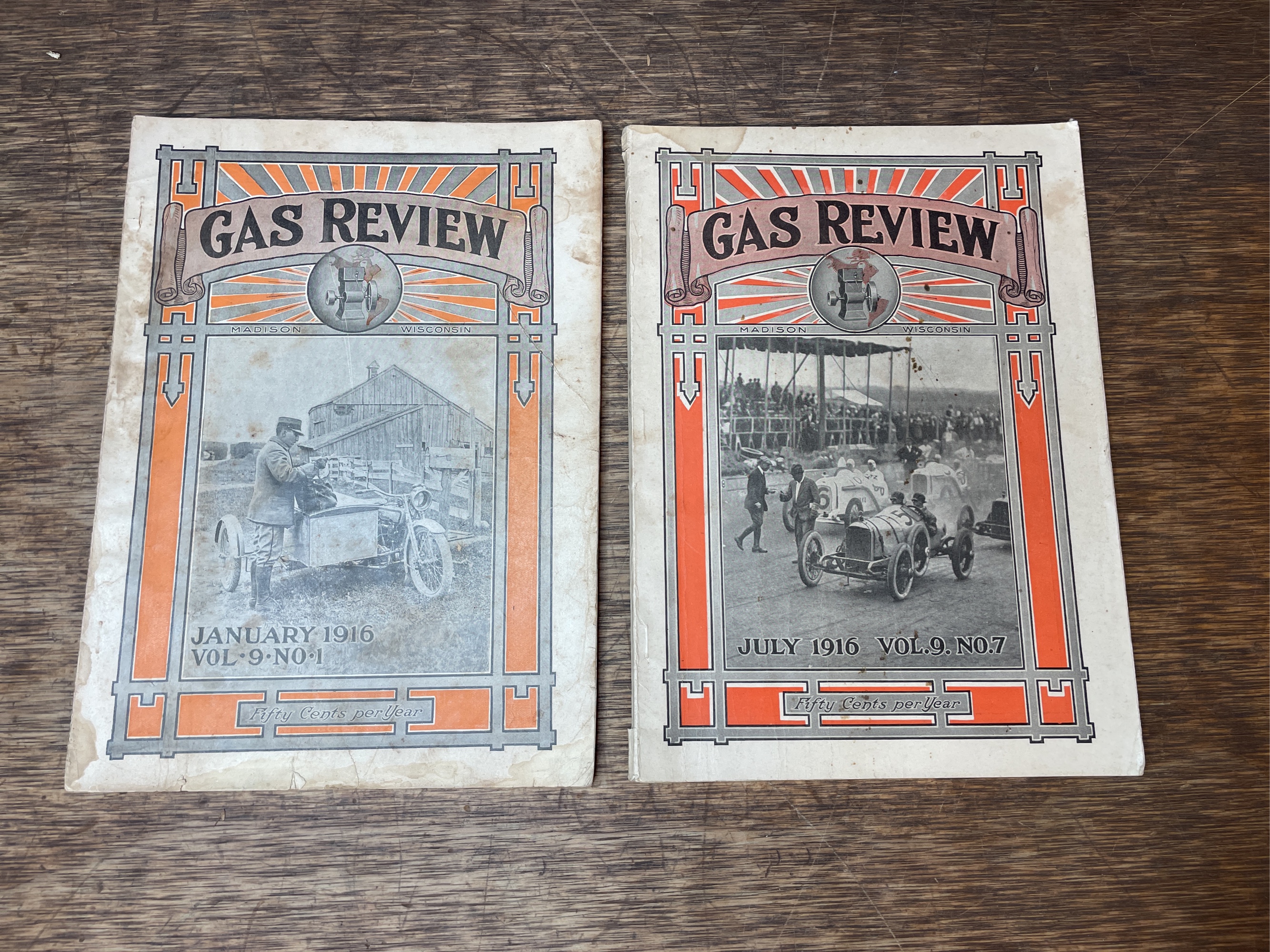 January + July 1916 Gas Review magazines. Both show wear and staining.