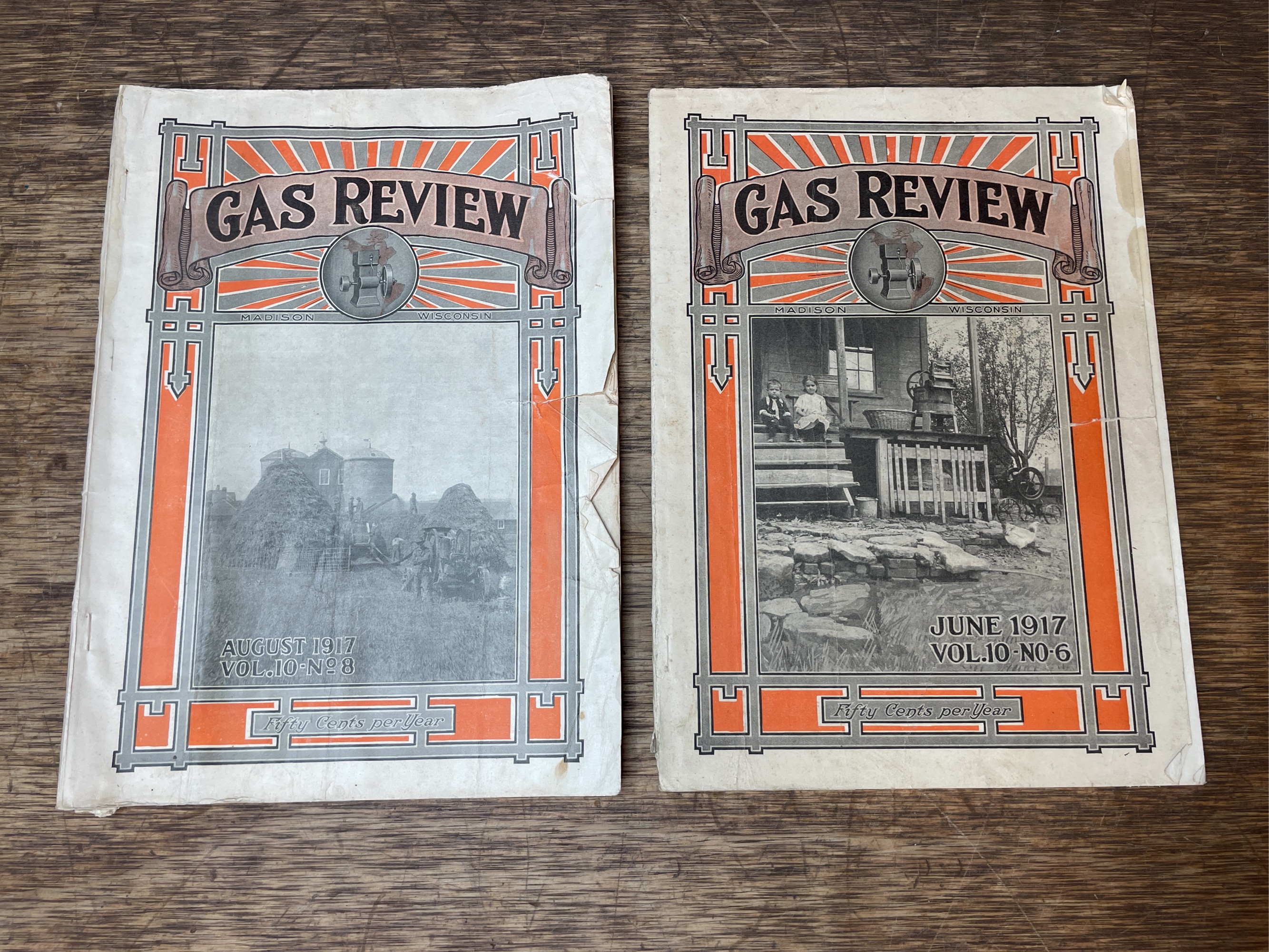 June + August 1917 Gas Review magazines. Both shows wear, damage, and staining.