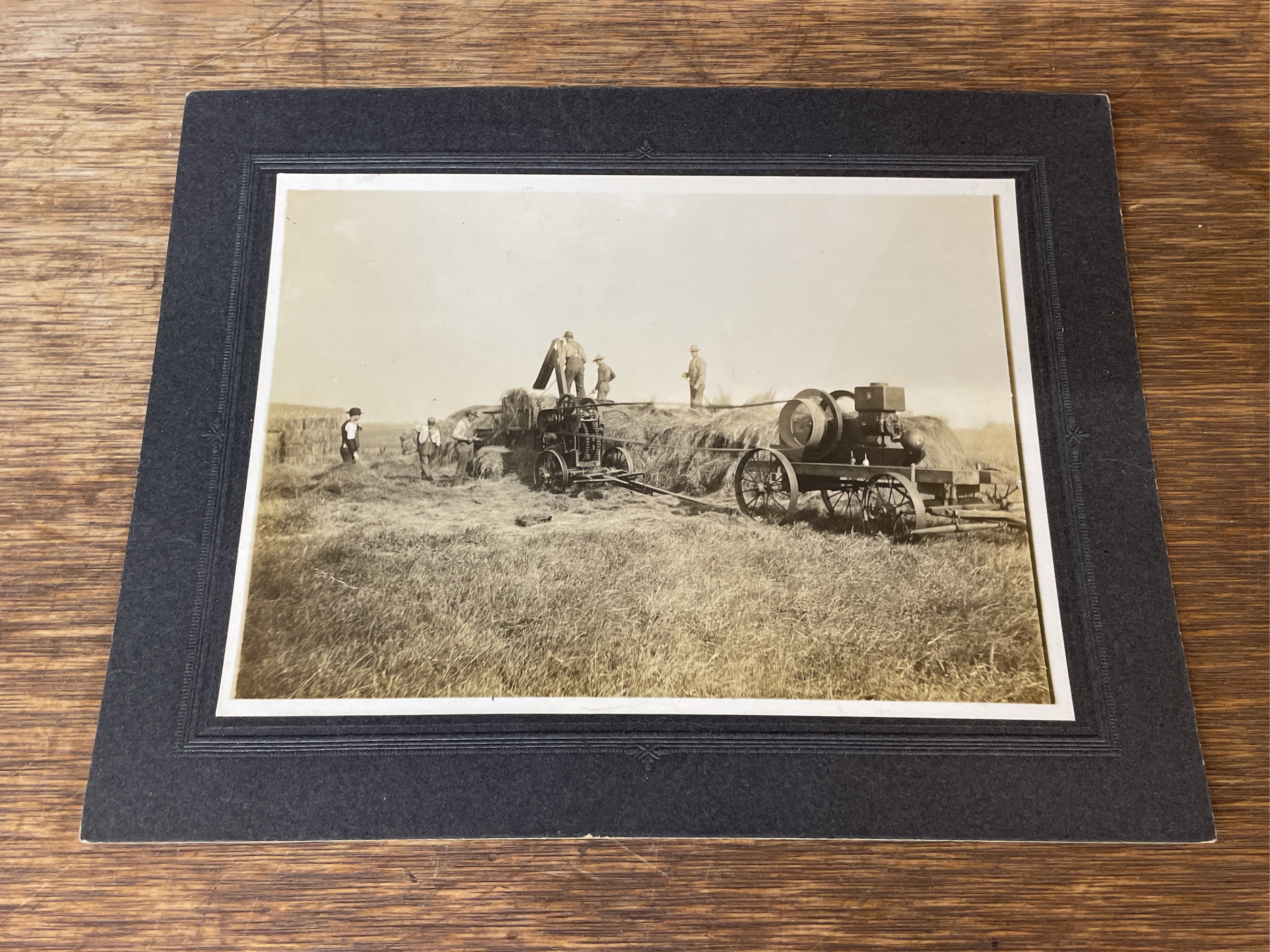 Engine on cart driving baler photo. Good condition. 9" x 7" overall.