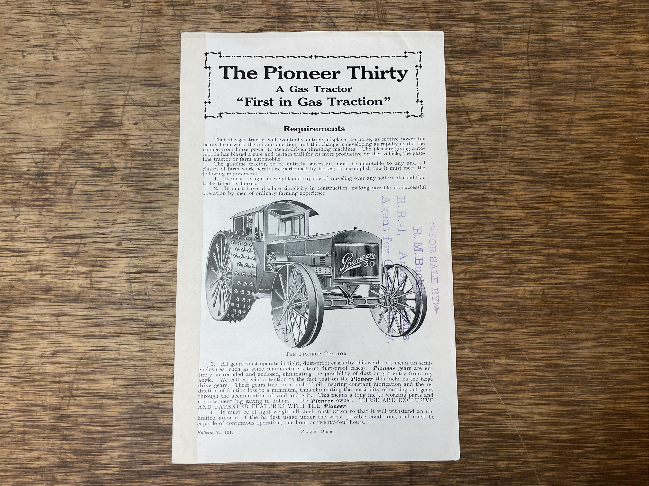 Pioneer Thirty tractor sales literature. Shows light wear with tape on edge.