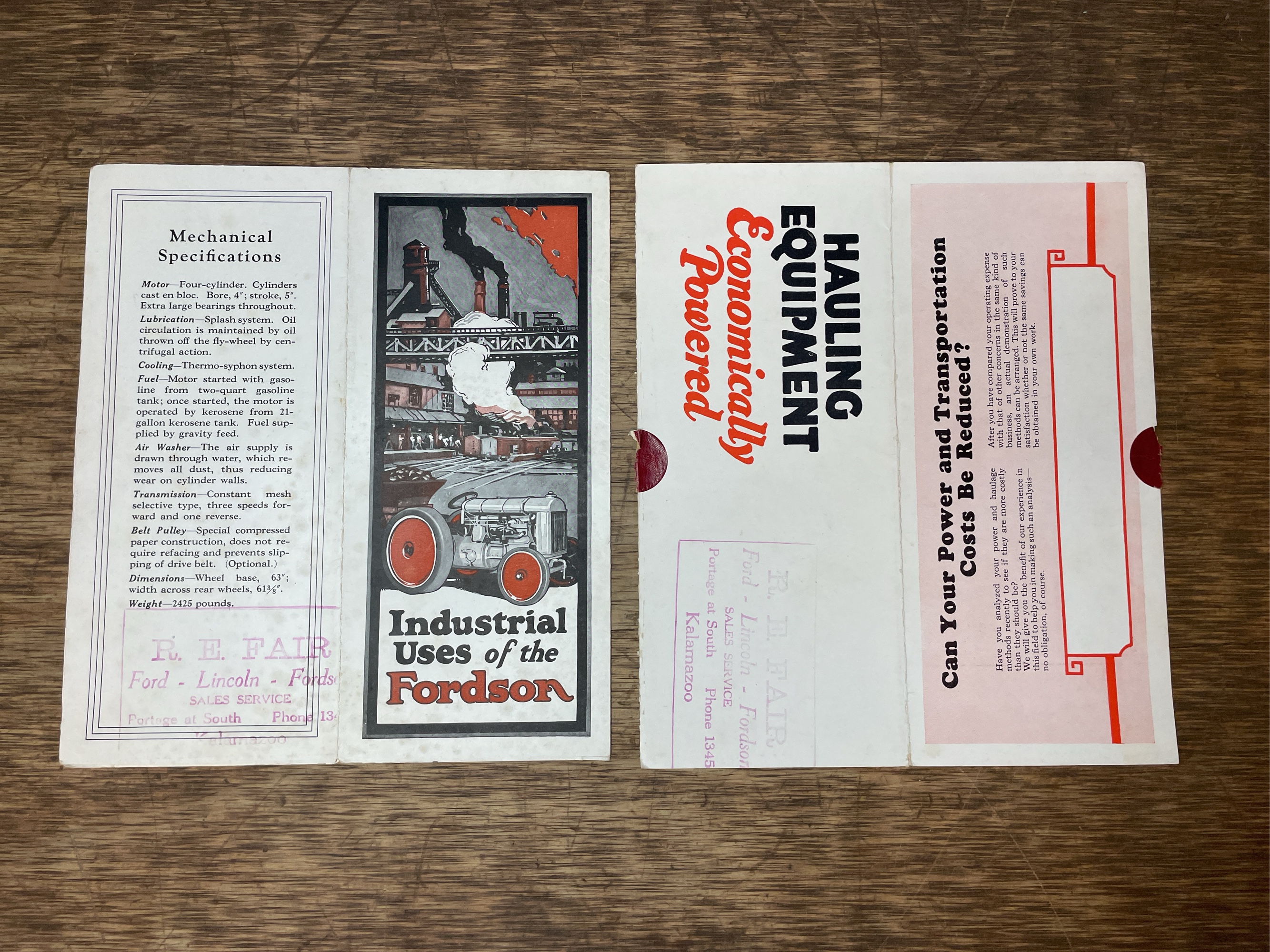 Two Fordson industrial sales literature. Both shows light wear and staining.