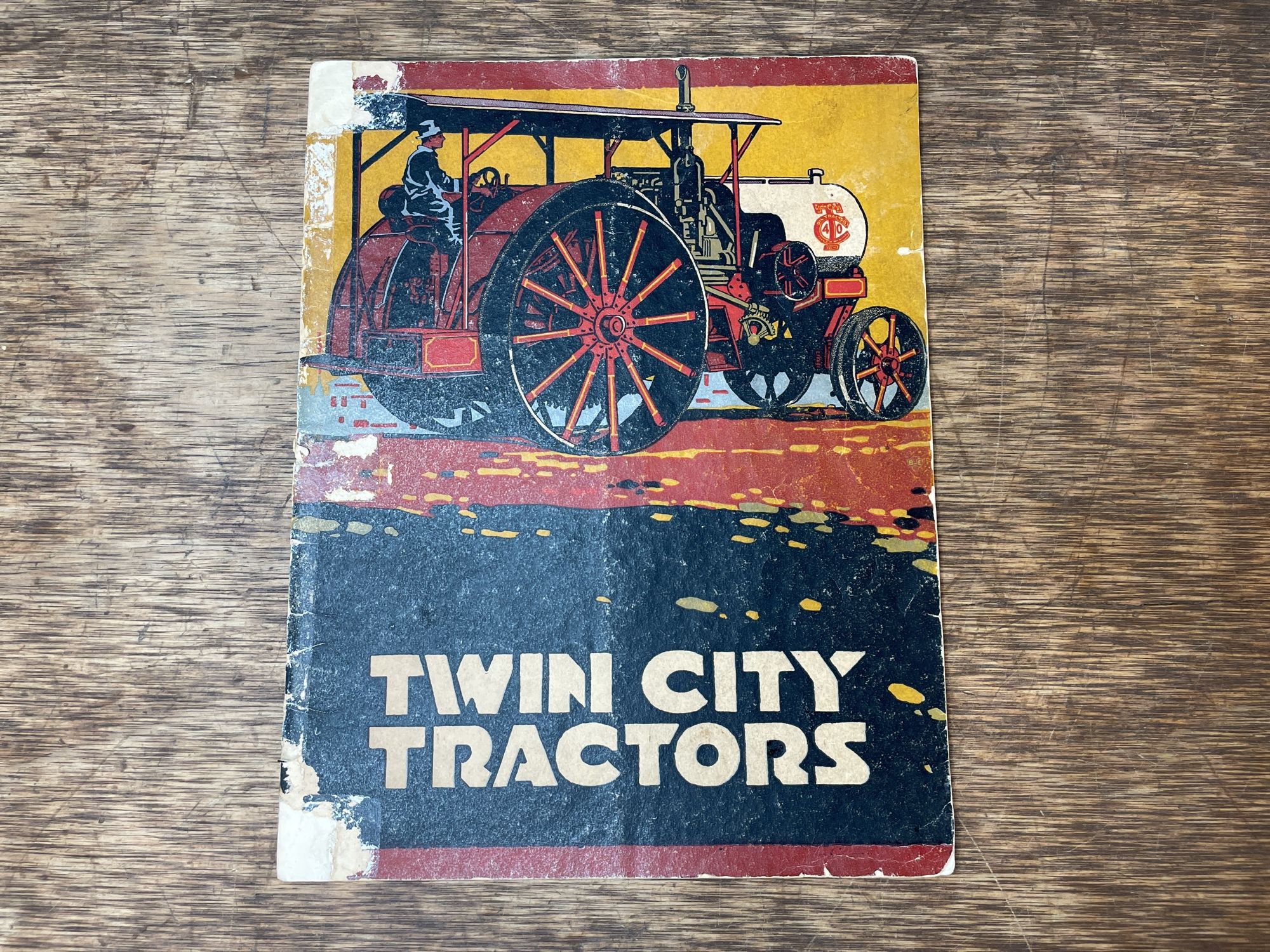 Minneapolis Steel & Machinery Co. Twin City kerosene tractors catalog. Shows wear, staining, writing, and has some tape.
