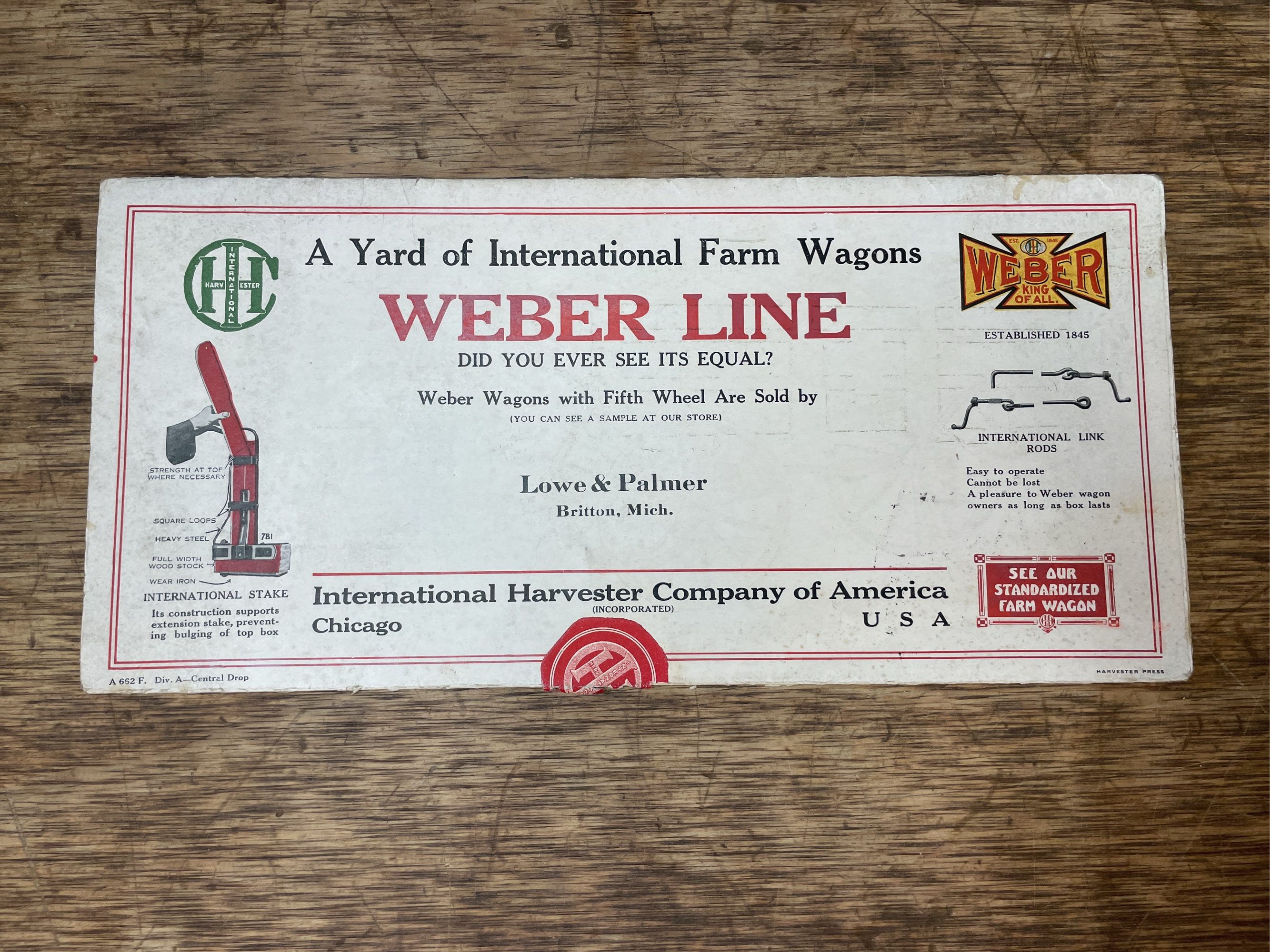 IHC Weber Wagons sales literature. Shows light wear, soiling, and some writing.