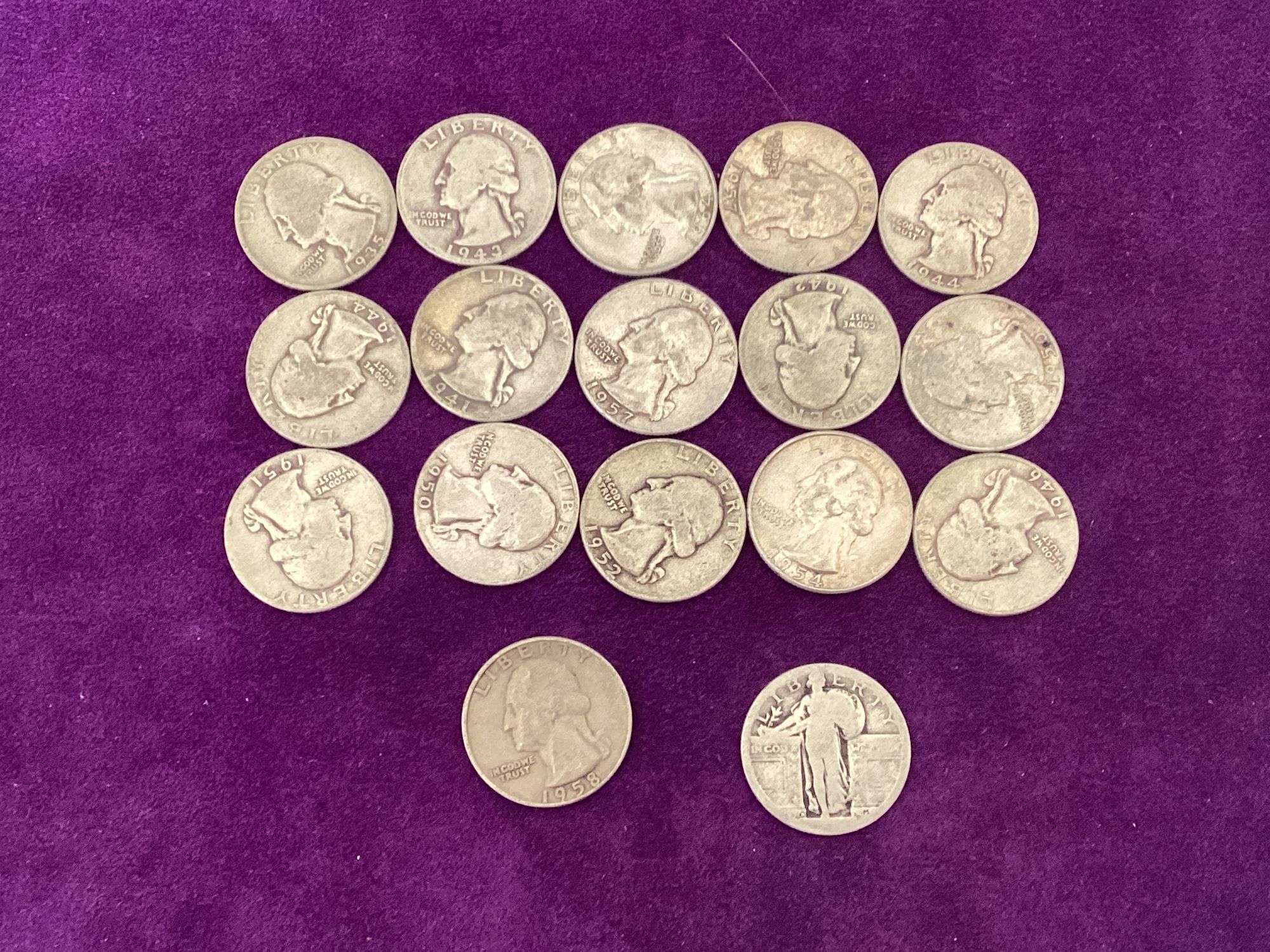 16 Washington silver quarters