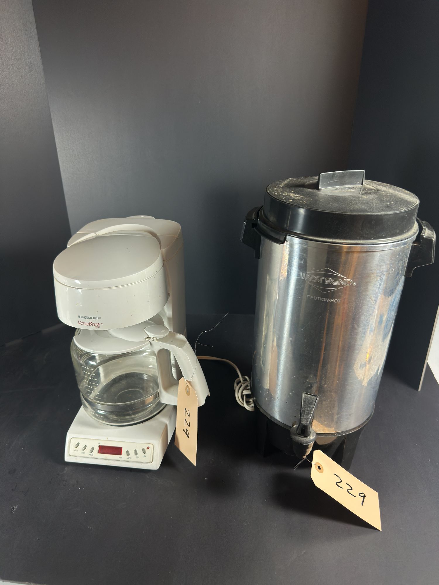 Includes a Black & Decker VersaBrew Plus coffee maker, and a West Bend coffee maker.