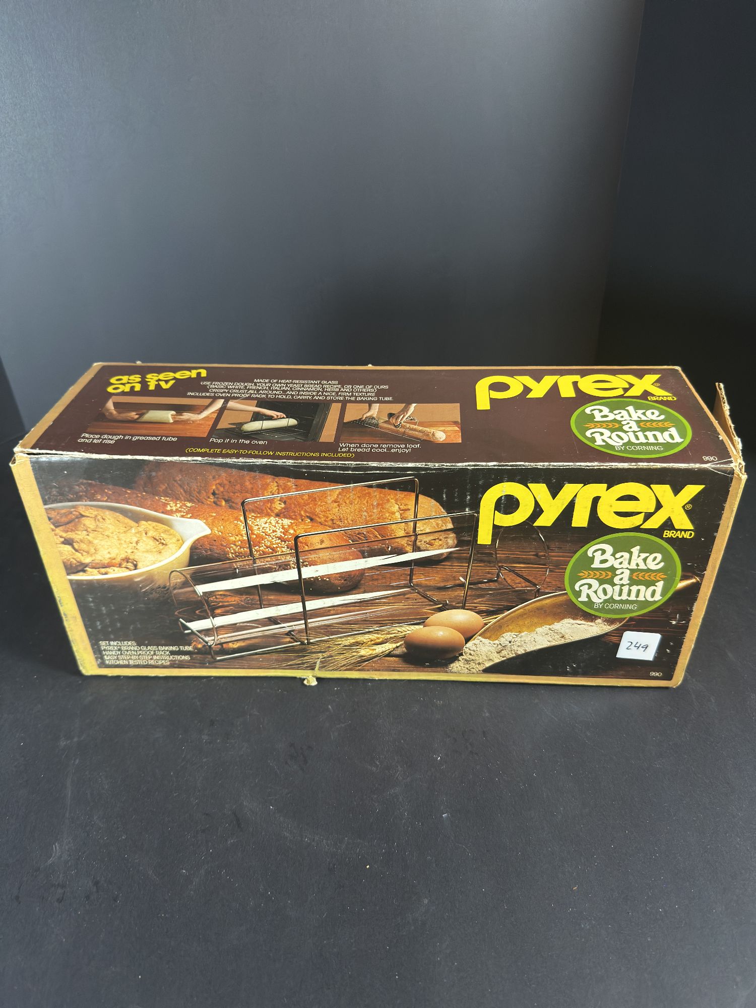 Pyrex Bake-a-Round bread baking system. Includes a wire rack and Pyrex glass baking tube, complete with original box and instructions.