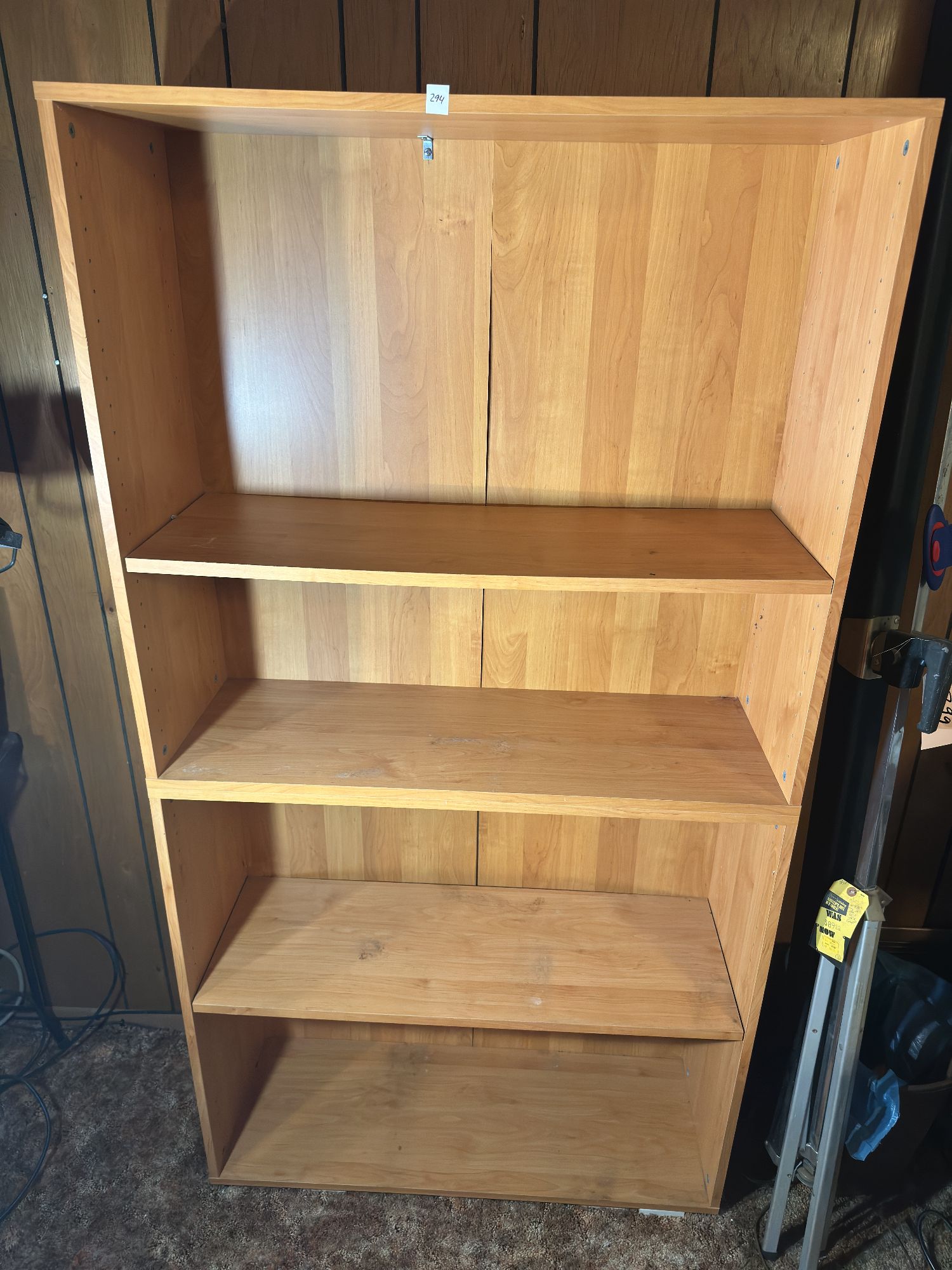 Wooden bookcase with multiple shelves. This is a perfect storage solution for books, decor, or other household items.