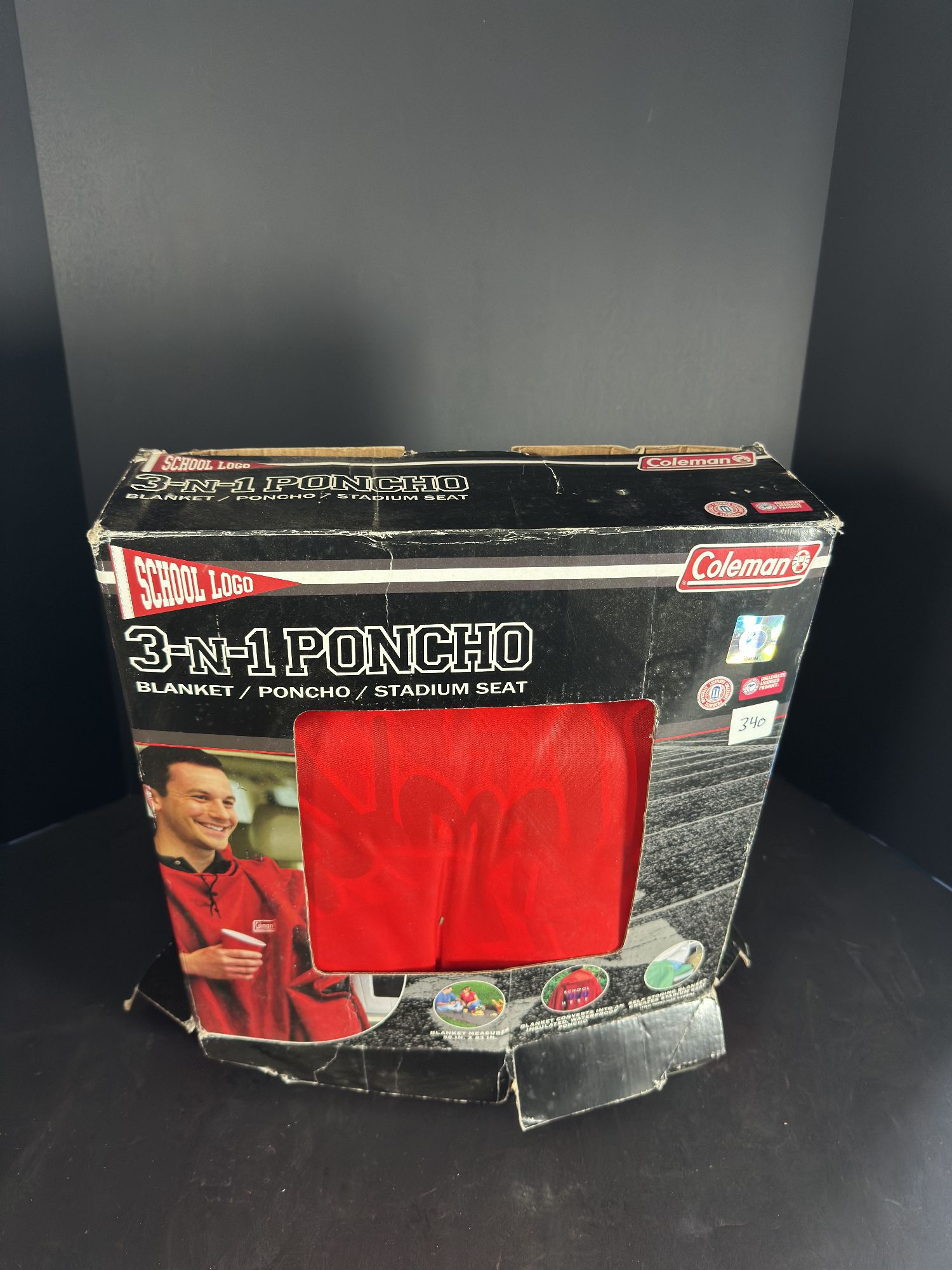 Coleman School Logo 3-in-1 Poncho, Blanket and Stadium Seat. The blanket measures 58 in. x 63 in. Blanket can be folded and converted into an insulated hood poncho or create a self storing blanket into a stadium seat.