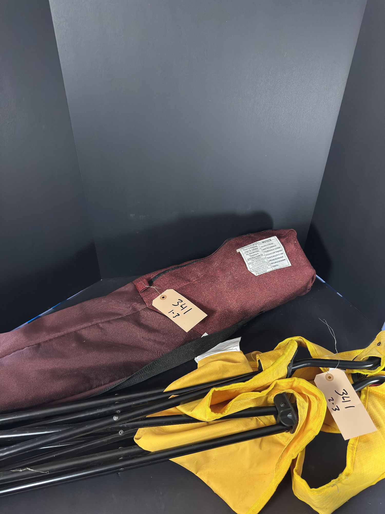This listing includes a set of safety flags with a carrying case. The flags are bright yellow and the case is dark red.