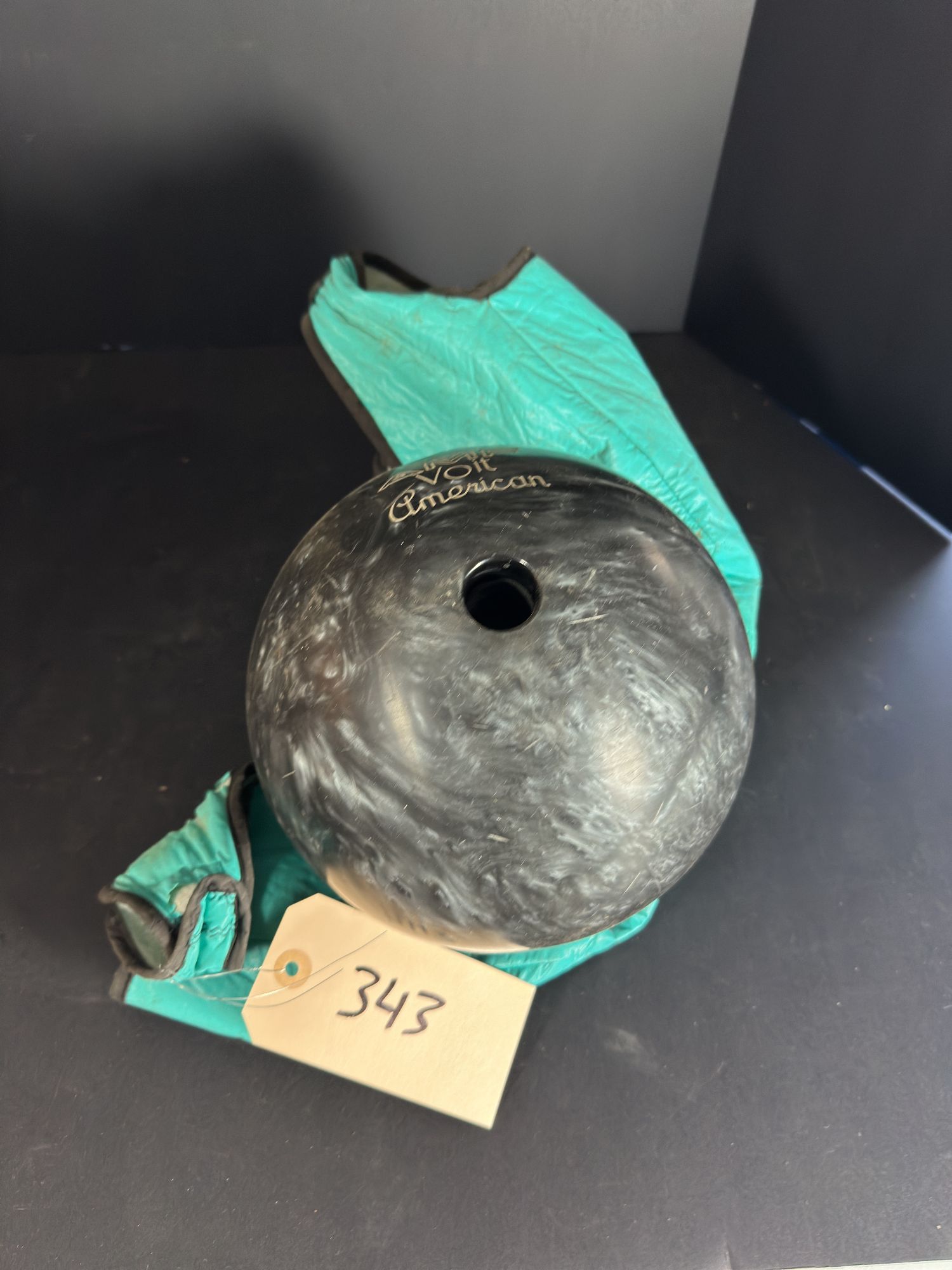 This lot includes an AMF Voit American bowling ball with a carrying bag, and a set of tent poles with carrying bag.